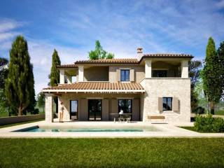 In a quiet location, just 10 km from Poreč and the sea, this modern rustic villa is located on a spacious plot of 979 m².
