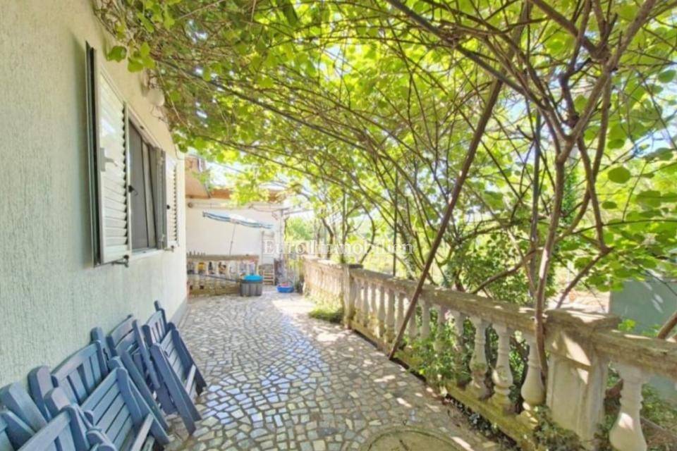 The house consists of a kitchen, dining room, bathroom, two bedrooms, and a living room. The living area is 183 m², while the covered terraces have a total area of 42 m². The garden has a surface area of 1,372 m² and allows parking for several vehicles.