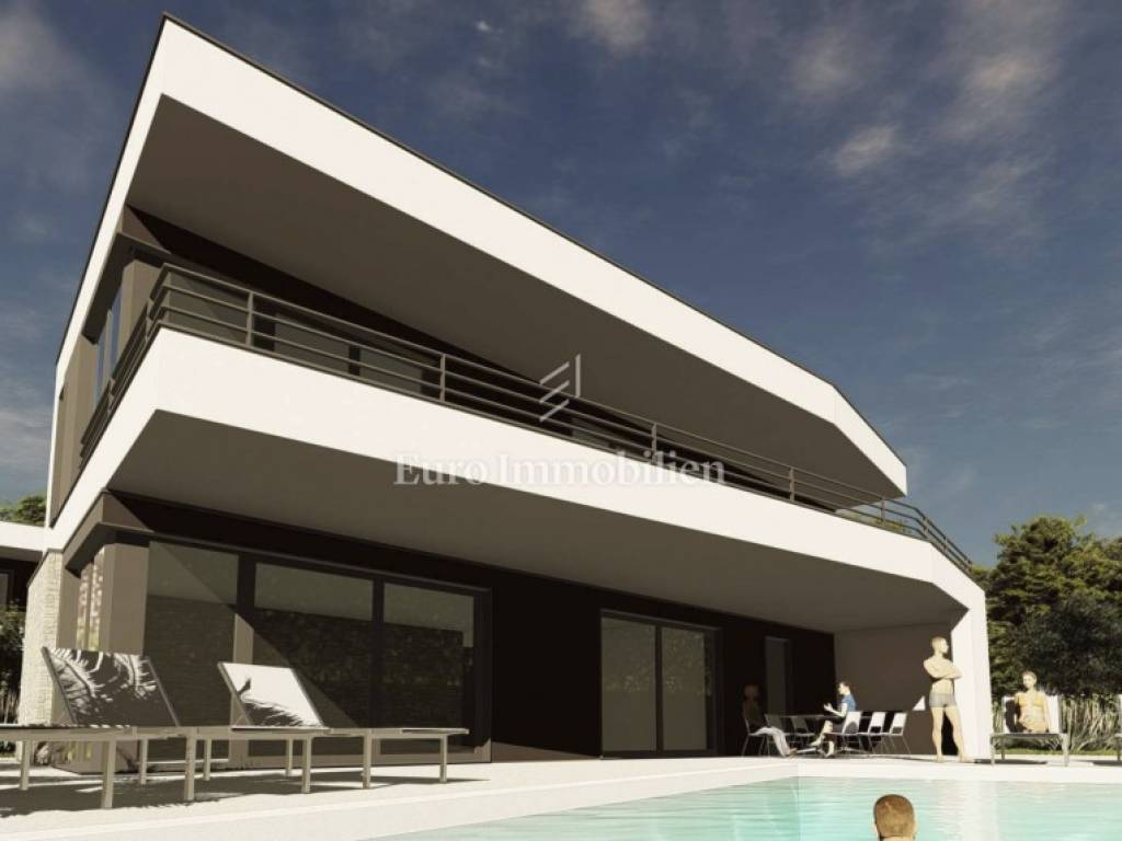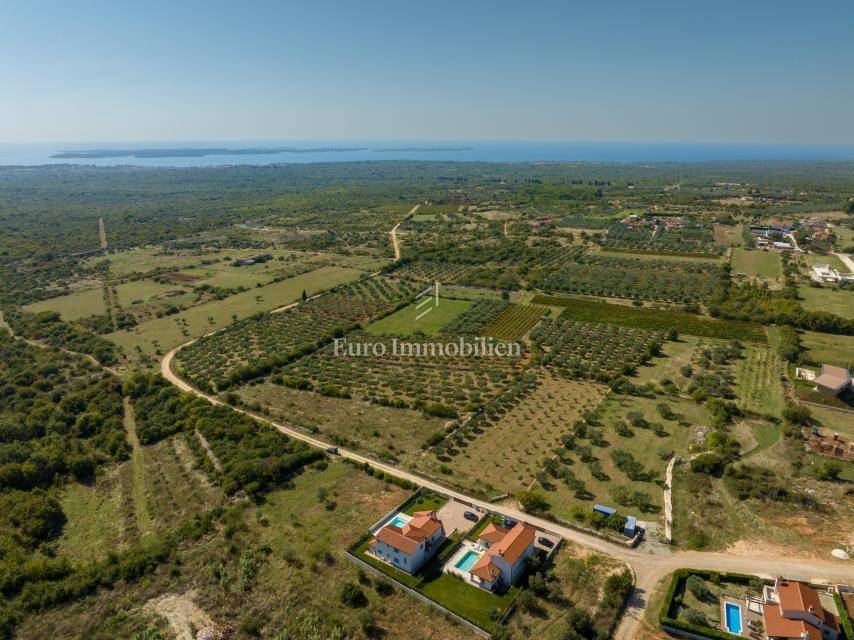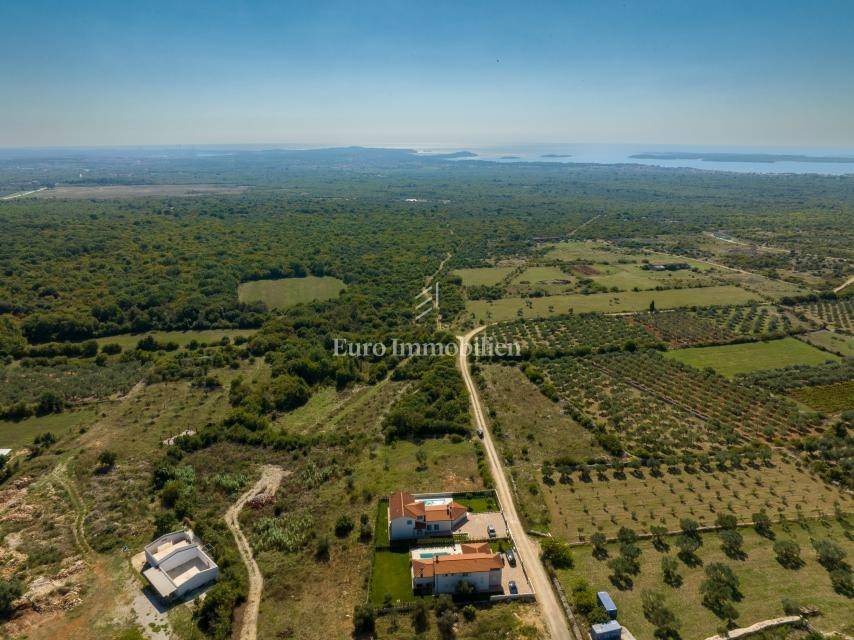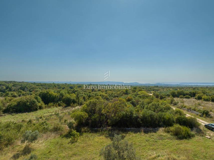 Parcela površine 718 m² nalazi se na rubu građevinske zone u Vodnjanu, na uzvišenju jugozapadne orijentacije s pogledom na more i Nacionalni park Brijuni. Plaćeni su priključci za vodu i struju, kanalizacija se nalazi uz pristupnu cestu, a u cijenu je uključena građevinska dozvola s plaćenim komunalijama za vilu od oko 202 m² s terasama, 3 spavaće sobe i 4 kupaonice.