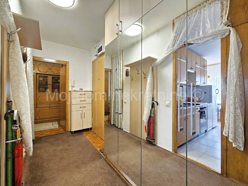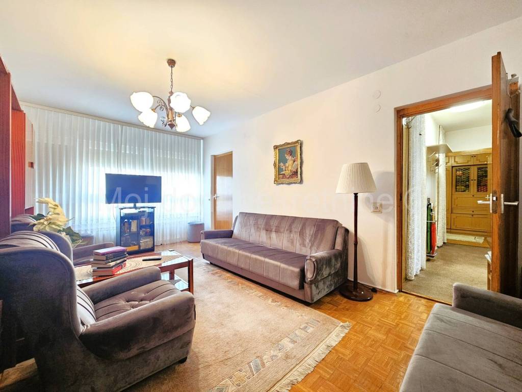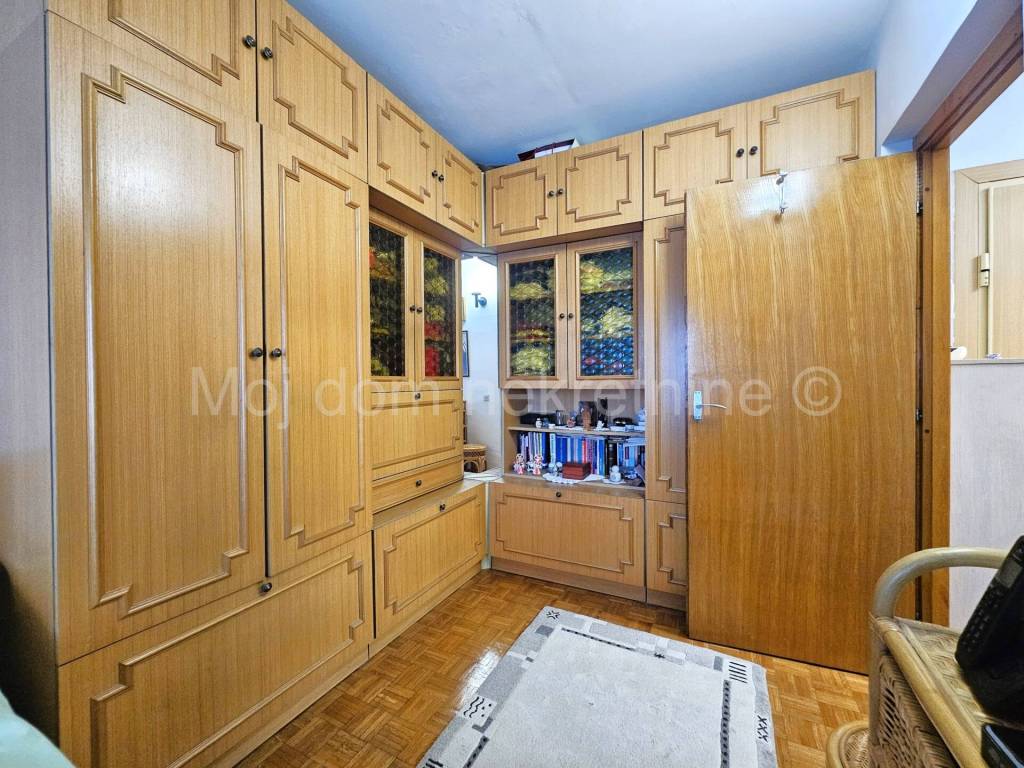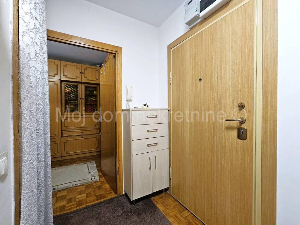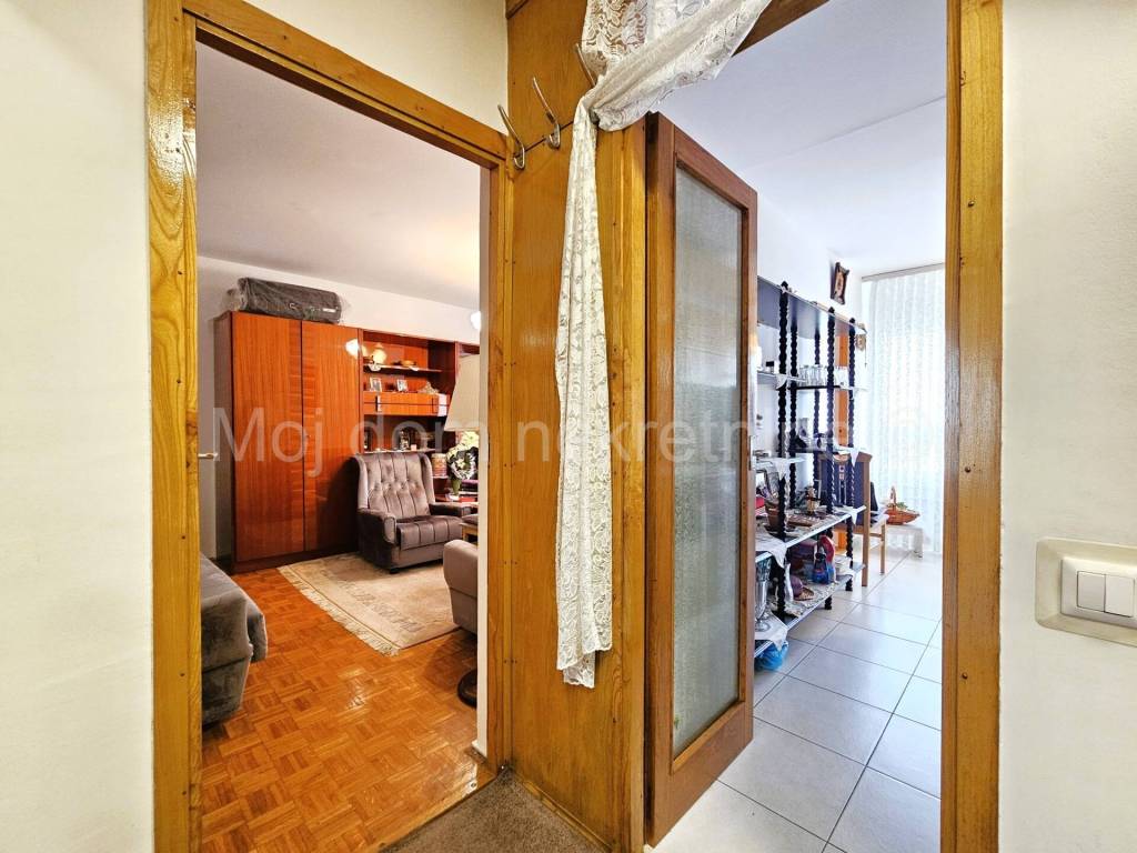 Prodaje se 2 soban stan s loggiom. Nalazi se na 8. katu zgrade od 16 katova. Stan je izrazito svijetao zbog svoje istočne orijentacije. Smješten je u blizini vrtića, škole, doma zdravlja, trgovine, tramvajske stanice te drugih bitnih sadržaja. 2014.g. promijenjene su instalacije i keramika u kuhinji te instalacije, keramika i sanitarije u kupaoni. 2021.g. postavljena je PVC stolarija s roletama, protuprovalna vrata i klima uređaj. 2024.g. promijenjena su ulazna vrata od zgrade. Optički internet u stanu.