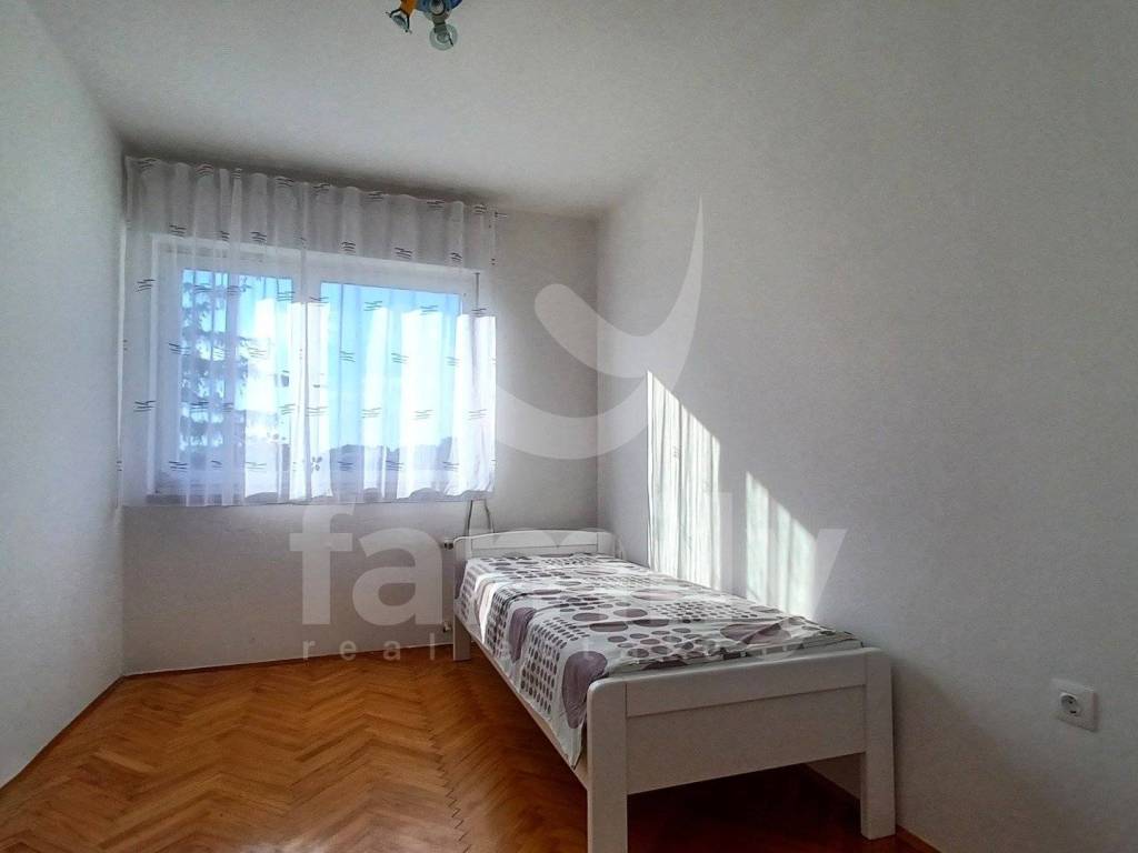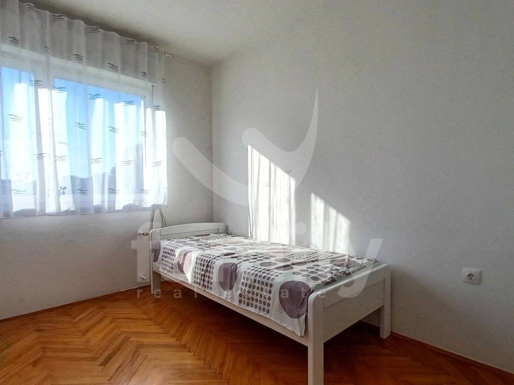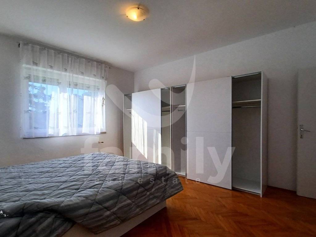 The apartment for rent is located in an excellent, extremely sought-after location in Pula, in the immediate vicinity of all important amenities necessary for a pleasant everyday life. The apartment consists of two spacious bedrooms, a large hallway, bathroom, kitchen with dining room, large living room and utility room, which makes it very functional and pleasant to live in. The floor coverings are a combination of high-quality parquet in the bedroom and living room, while the kitchen and bathroom are tiled. The apartment is fully furnished so that the future tenant does not have to make any investments. Heating and cooling are regulated by air conditioning.