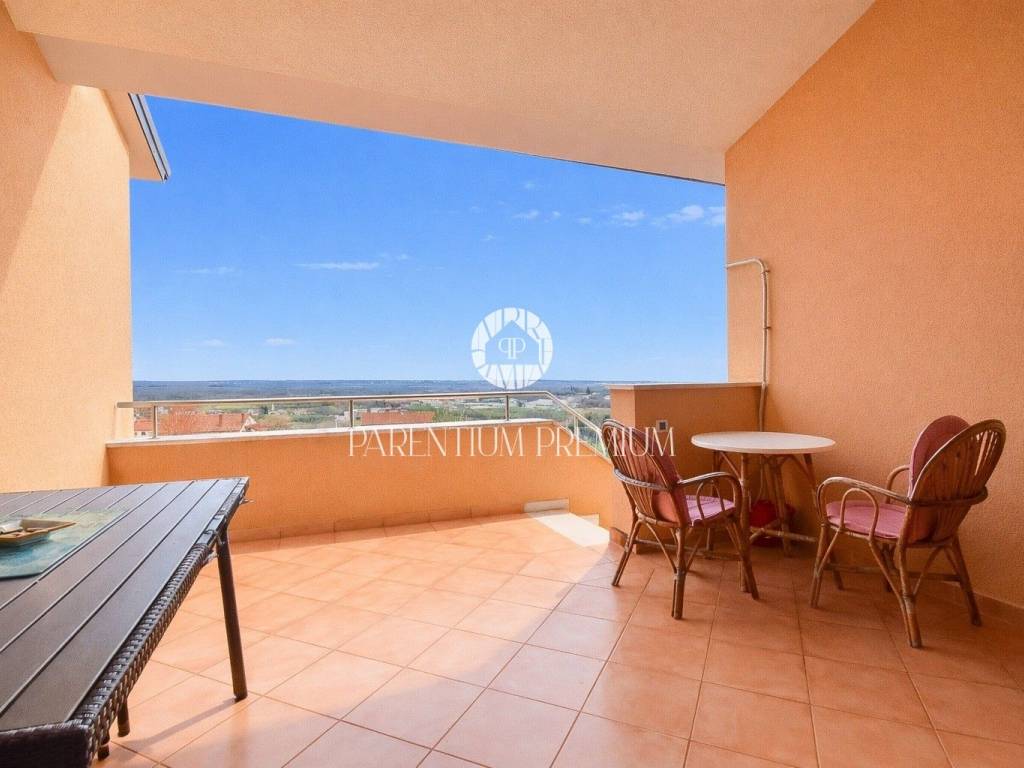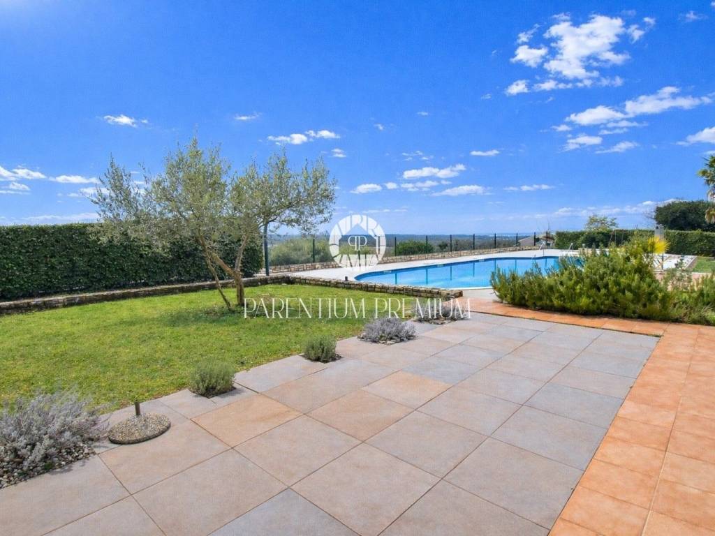 Located in a peaceful and well-maintained settlement in the area of Poreč, this attractive terraced house offers an open panoramic sea view and access to a shared swimming pool, within a harmonious complex of nine houses currently used for private purposes and tourist rentals.