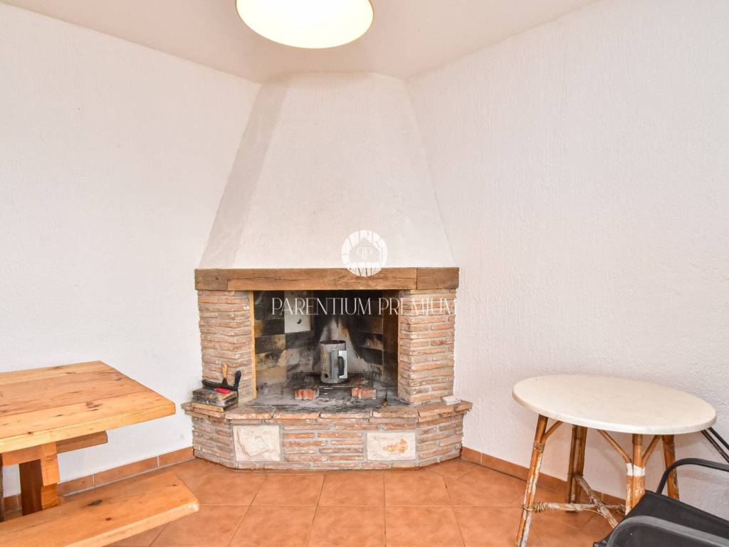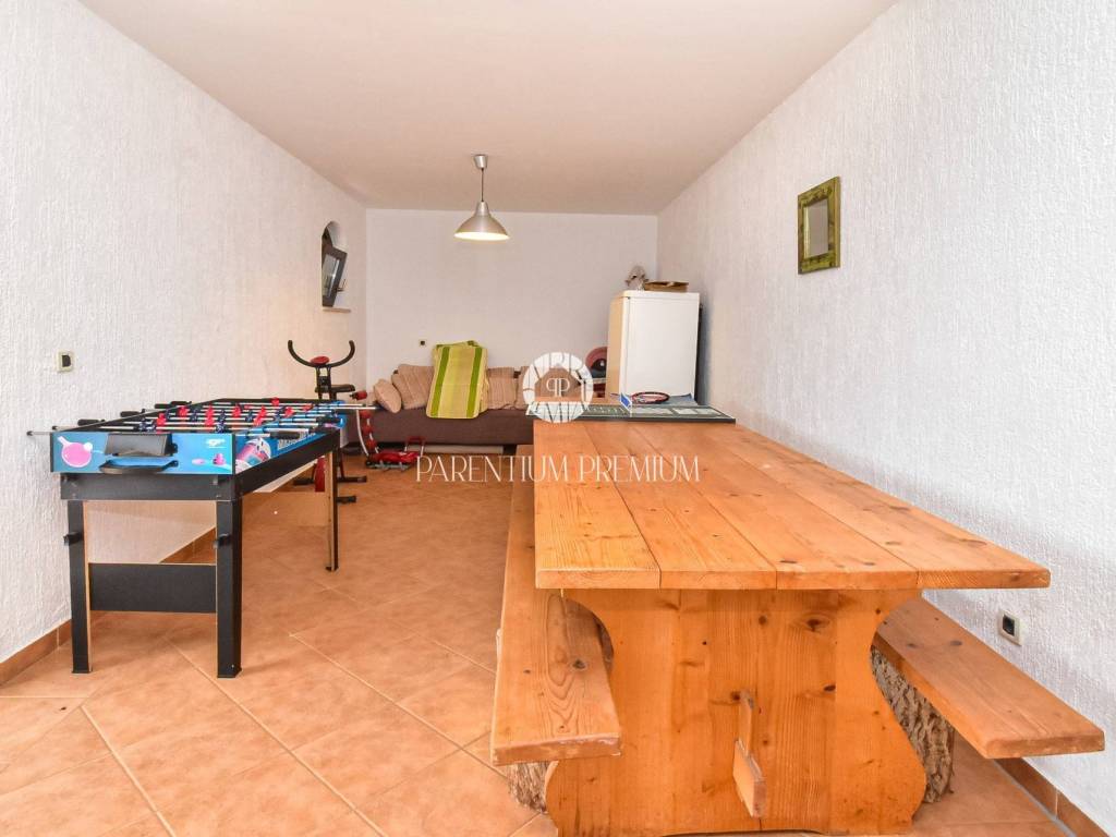 From the terrace, external stairs lead down to a private courtyard where a spacious tavern with a fireplace is located, ideal for gatherings throughout the year. Heating and cooling are provided by air conditioning units, ensuring comfort in all seasons.