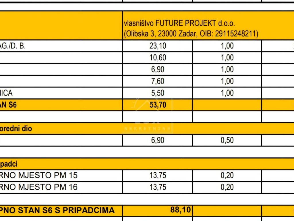 Stanu pripadaju i dva parkirna mjesta PM15 i PM16 na okućnici zgrade (pov. 13.75 m2 i 13.75 m2).