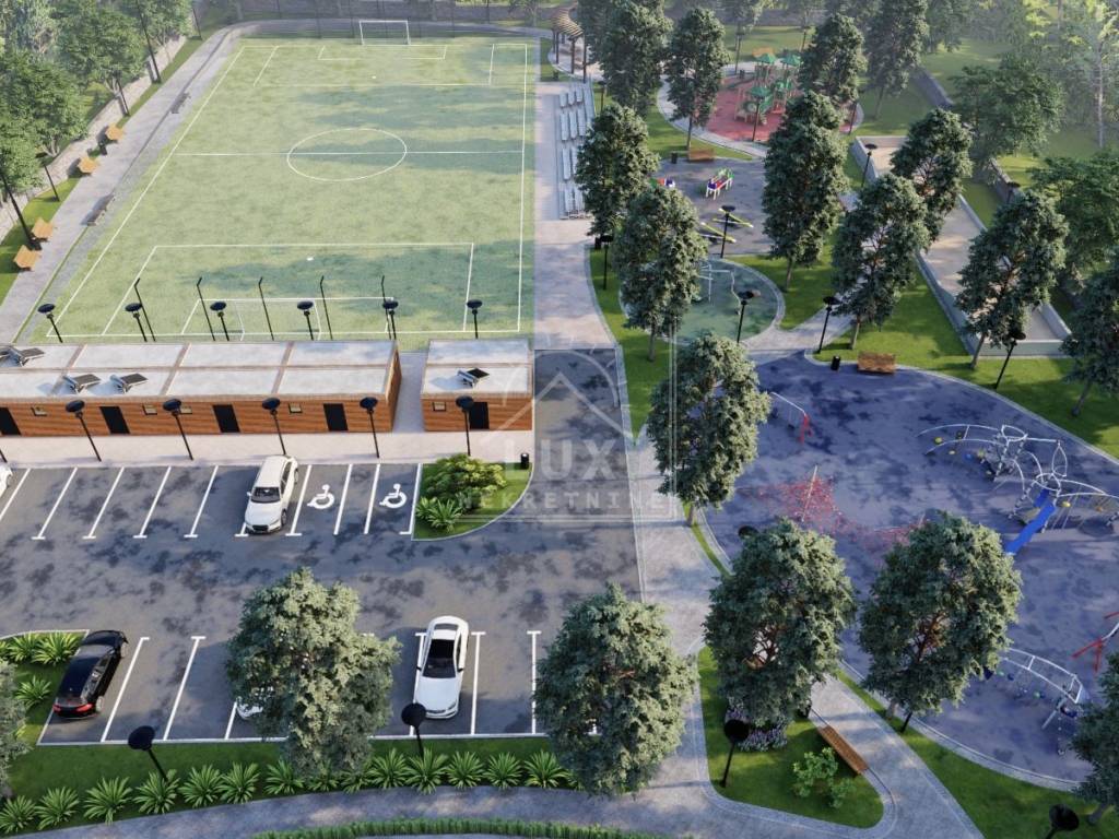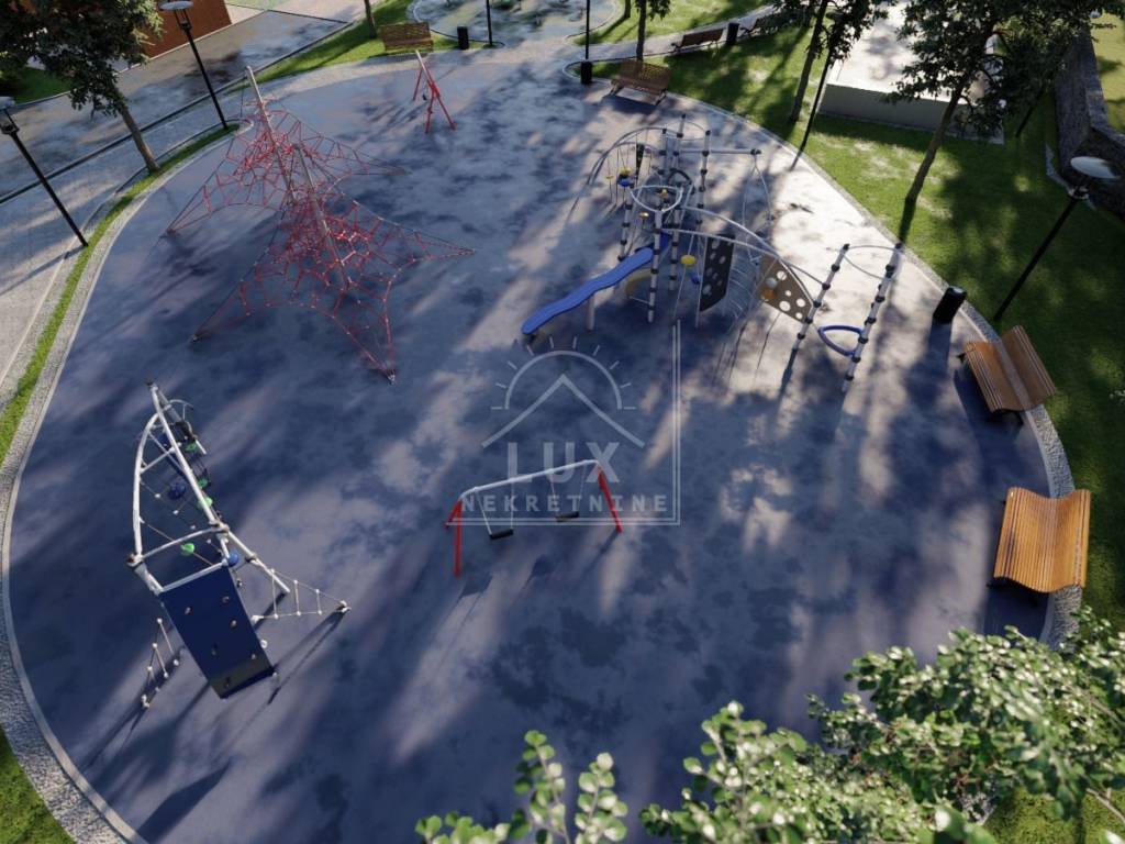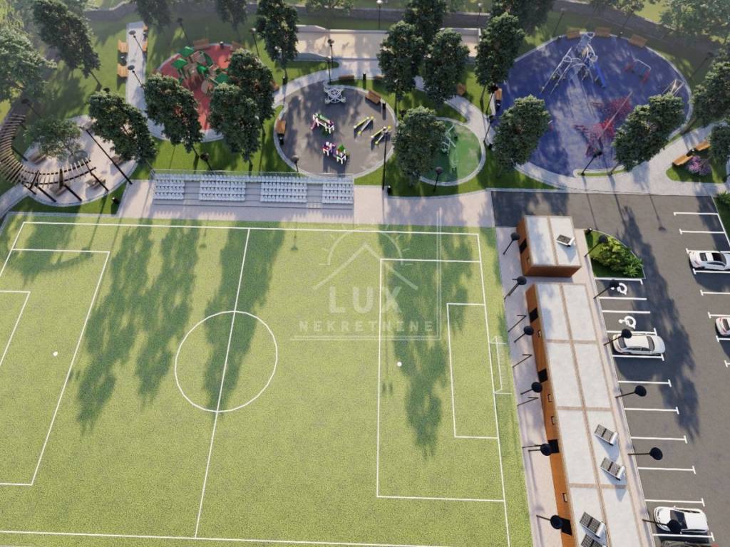 Lokacija je iznimno mirna, u blizini prirode i u okruženju novijih zgrada koje kreiraju manje urbano naselje novijeg datuma. Ispred zgrade planirana je izgradnja velikog zelenog parka na površini od 5000 m2 (u oglasu se nalazi i više fotografija istog).