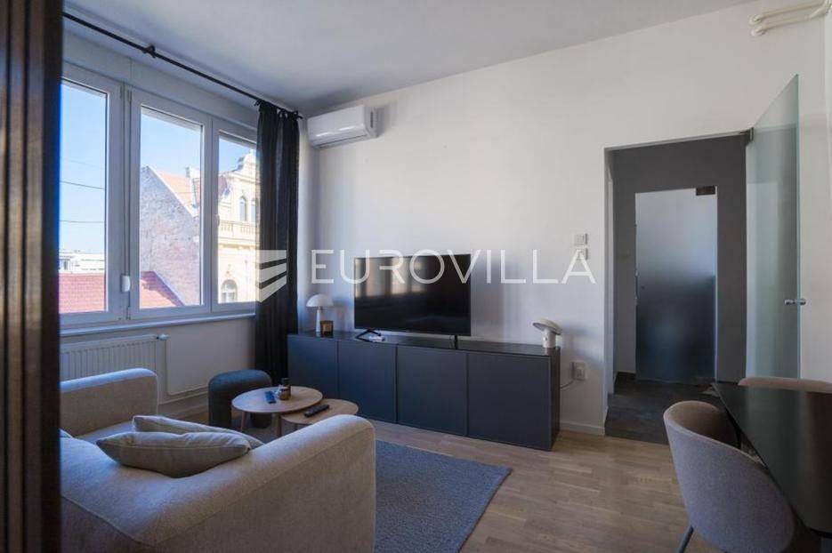 Osijek, Centar – iznajmljuje se dizajnerski uređen i namješten stan u strogom centru grada, koji se sastoji od dnevne sobe s blagovaonicom i kuhinjom, spavaće sobe i balkona. Nedavno je potpuno adaptiran te se nalazi na trećem katu stambene zgrade bez lifta. Stan ima ukupnu stambenu površinu od 40 m² i orijentiran je prema sjeveru. Dnevna soba sadrži velike staklene stijene koje pružaju visoku razinu prirodnog svjetla. Od dodatne opreme stan sadrži klima-uređaj, indukcijsku ploču za kuhanje, perilicu posuđa te je opremljen svim namještajem potrebnim za ugodan boravak.Lokacija: Stan je smješten u strogom centru Osijeka, kod Trga Ante Starčevića, s izravnim izlazom na glavnu šetnicu. U neposrednoj blizini nalaze se javni prijevoz, banke, trgovine različitih namjena, sud, Financijska agencija, Filozofski, Pravni i Ekonomski fakultet, vrtići i osnovne škole te dvije teretane. Osječka promenada udaljena je pola minute hoda, a kampus je udaljen 5 minuta vožnje javnim prijevozom.Za više informacija i razgledavanje slobodno nas kontaktirajte!... Više na eurovilla.hr, ID: 722590