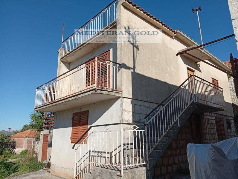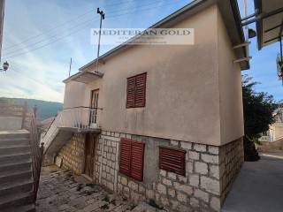 Trogir, Ciovo, Okrug Donji, house for sale that offers unlimited possibilities for conversion into a weekend house, family house or as a tourist facility. The house of 120m2 of living space, on two floors, a balcony and a terrace with a view. On the ground floor there is a hallway, kitchen with living area, toilet and bathroom and 1 room on the south, On the first floor; entrance hall, small toilet, two rooms and a balcony along the entire length. From this floor, wooden stairs lead to the attic and a terrace. Everything is for complete decoration. Distance from the sea 350m2, south orientation. In front of the house there is a public parking lot, immediately available. Ideal for family life or as an investment.