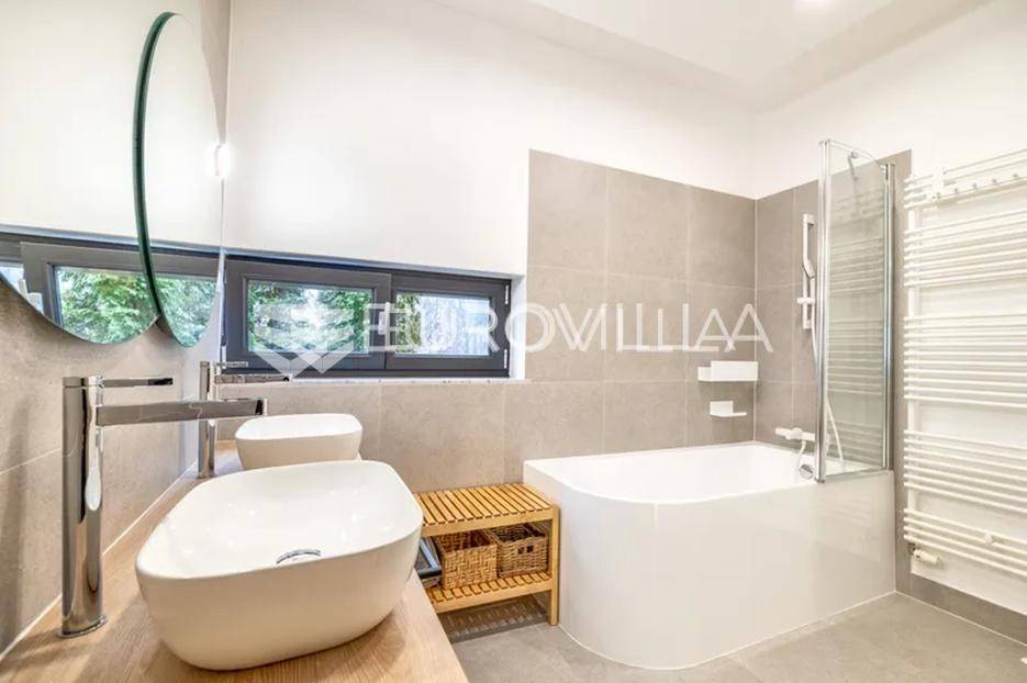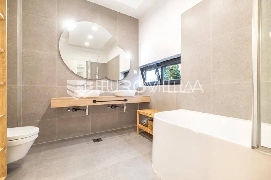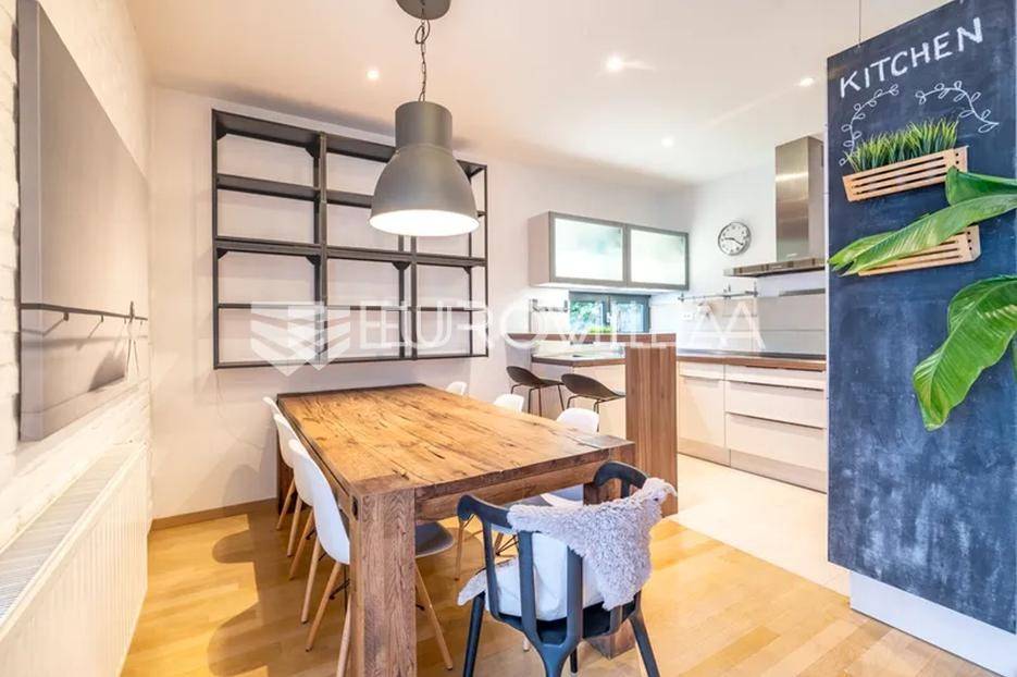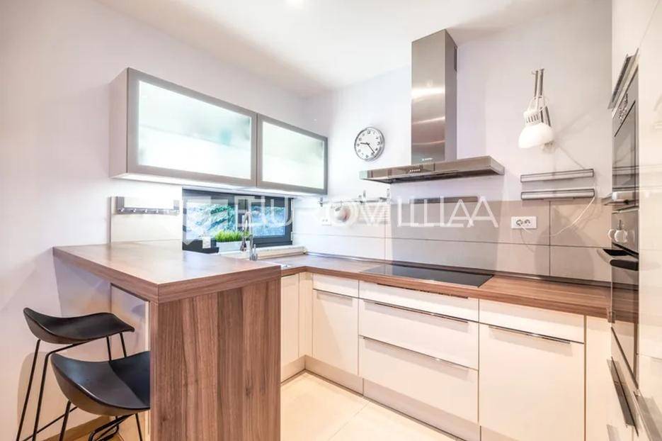 Zagreb, Črnomerec (Vrhovec), moderno uređen trosoban stan površine 104 m² na prvom katu u novijoj zgradi bez lifta.Stan se sastoji od prostranog dnevnog boravka s blagovaonicom i kuhinjom, s izlazom na zapadno orijentiranu natkrivenu terasu, gostinjskog toaleta, vešeraja te odvojenog spavaćeg dijela s dvije spavaće sobe i kupaonicom.Opremljen je smart home sustavom, vrhunskom aluminijskom vanjskom stolarijom (AluK), električnim roletama, klimatizacijom u svim prostorijama te visinom stropa od 280 cm. Dnevni boravak dodatno je naglašen spuštenim stropom s rasvjetom i dekorativnim kamenom, a terasa ima električnu tendu. Kuhinja je marke Nolte s Bosch aparatima, a u stanu su ugrađeni ormari Eduro.Uz cijenu stana pripadaju mu parkirno mjesto (3,13 m²), ostava (10,40 m²) i garaža (10,10 m²).Lokacija je odlična, nekretnina je smještena na jednom od najatraktivnijih dijelova grada, u blizini bolnica Vinogradska i Sveti Duh. Udaljenost strogog centra grada je na desetak minuta vožnje.Za dodatne informacije i dogovor oko razgledavanja slobodno nam se obratite.... Više na eurovilla.hr, ID: 154861