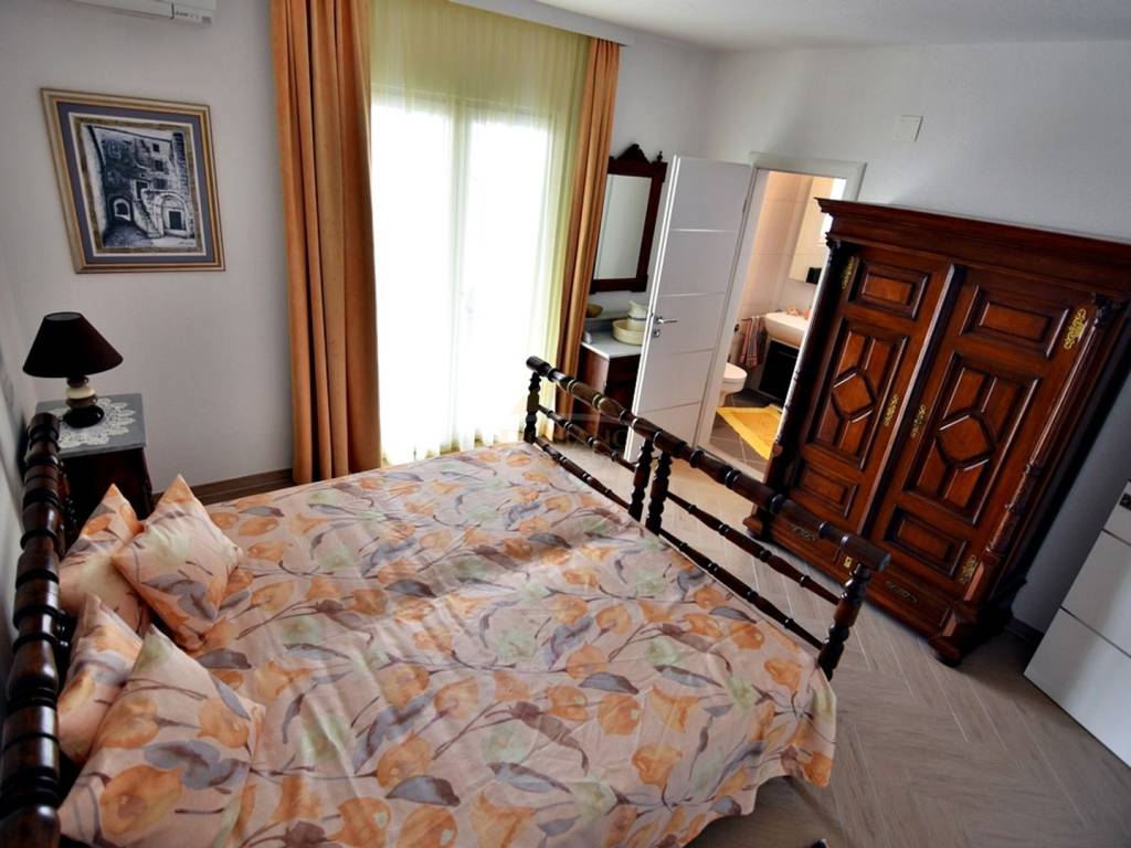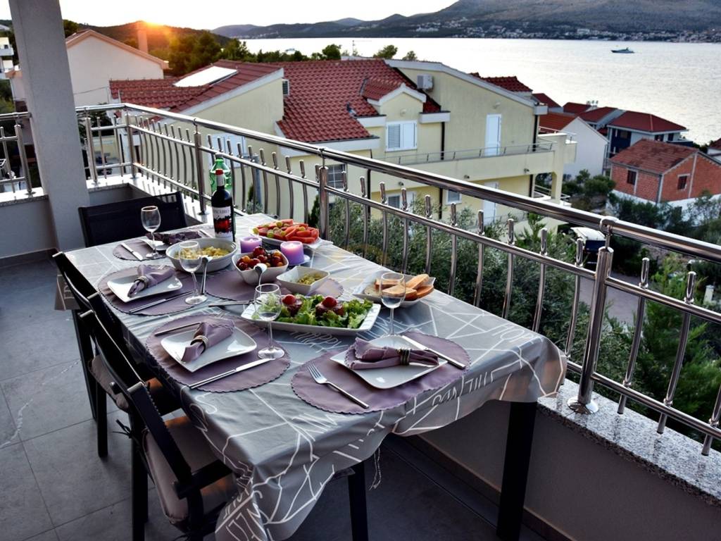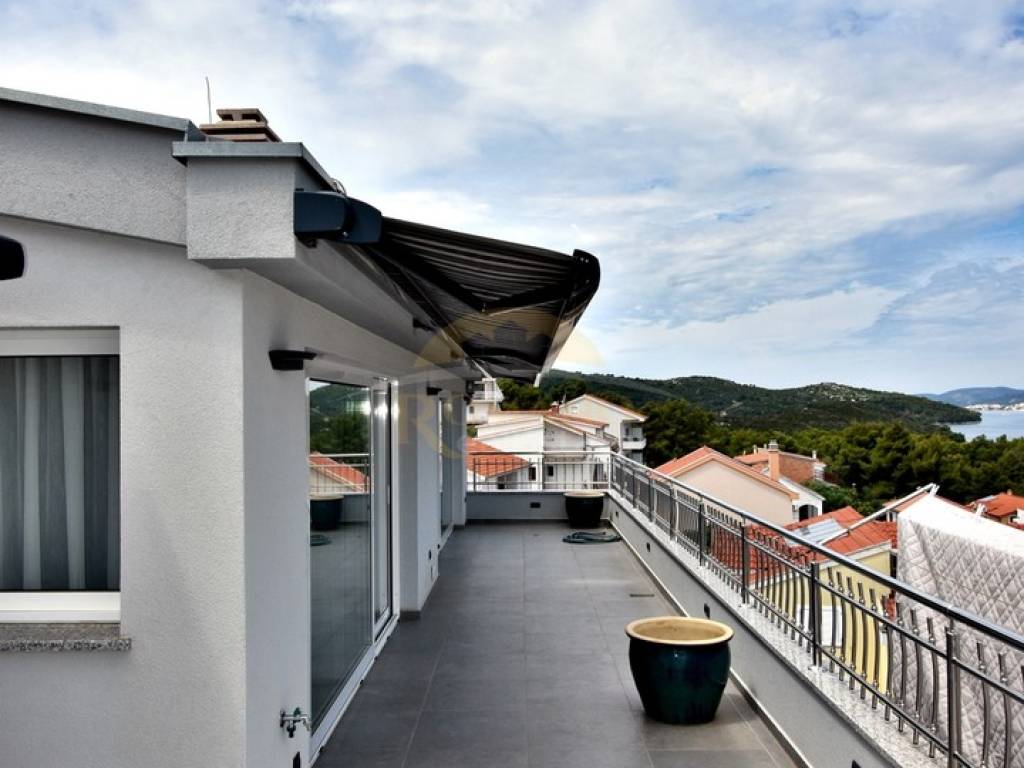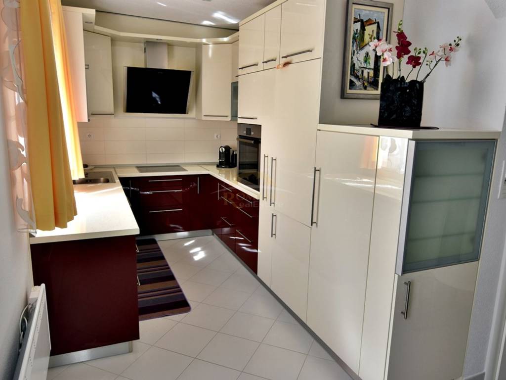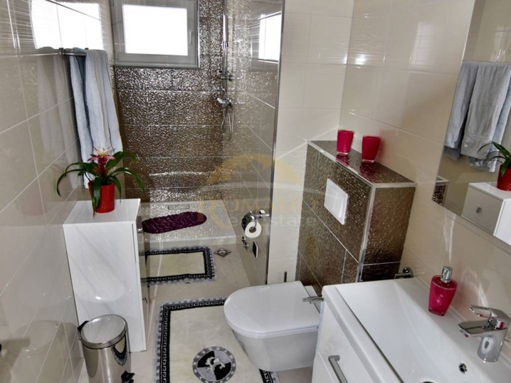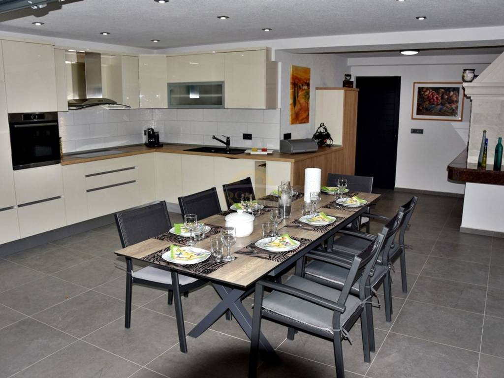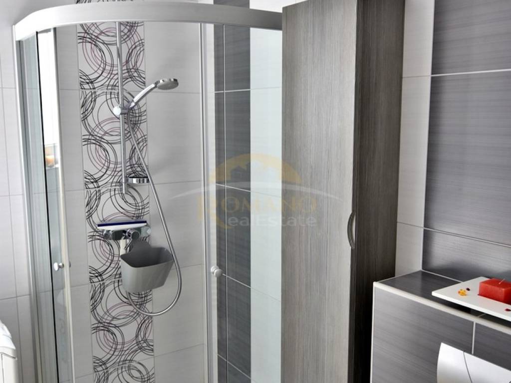 On the ground floor there is a large apartment of 135 m2 net area. The apartment has a hallway, two bedrooms, three bathrooms, a large terrace, and a beautiful, spacious, well-appointed area that functions as a summer kitchen with a fireplace.