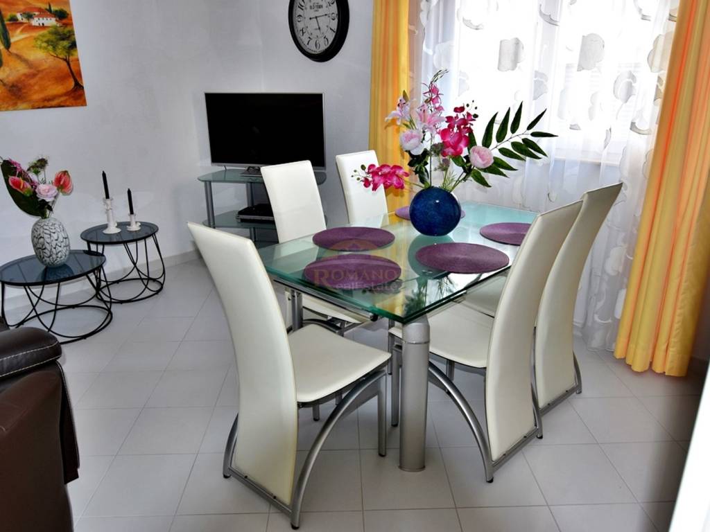 On the first floor of the house, there is an apartment of approximately 80m2 net area with two bedrooms, two bathrooms, and a large kitchen with a dining and living area, as well as a terrace.