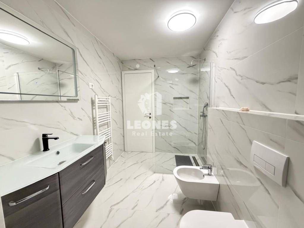 Each room in the apartment is equipped with air conditioning and underfloor heating, and the apartment also has a chimney and there is the possibility of installing a fireplace or pellet stove.