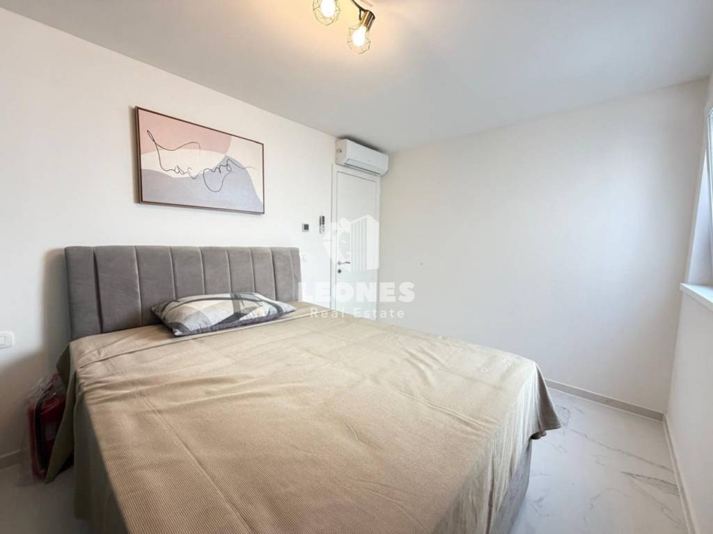 The apartment is located on the 2nd floor of a quality building with a modern design. It consists of 2 bedrooms, a bathroom, a kitchen with a dining room and a living room that has access to a covered terrace with a beautiful sea view.