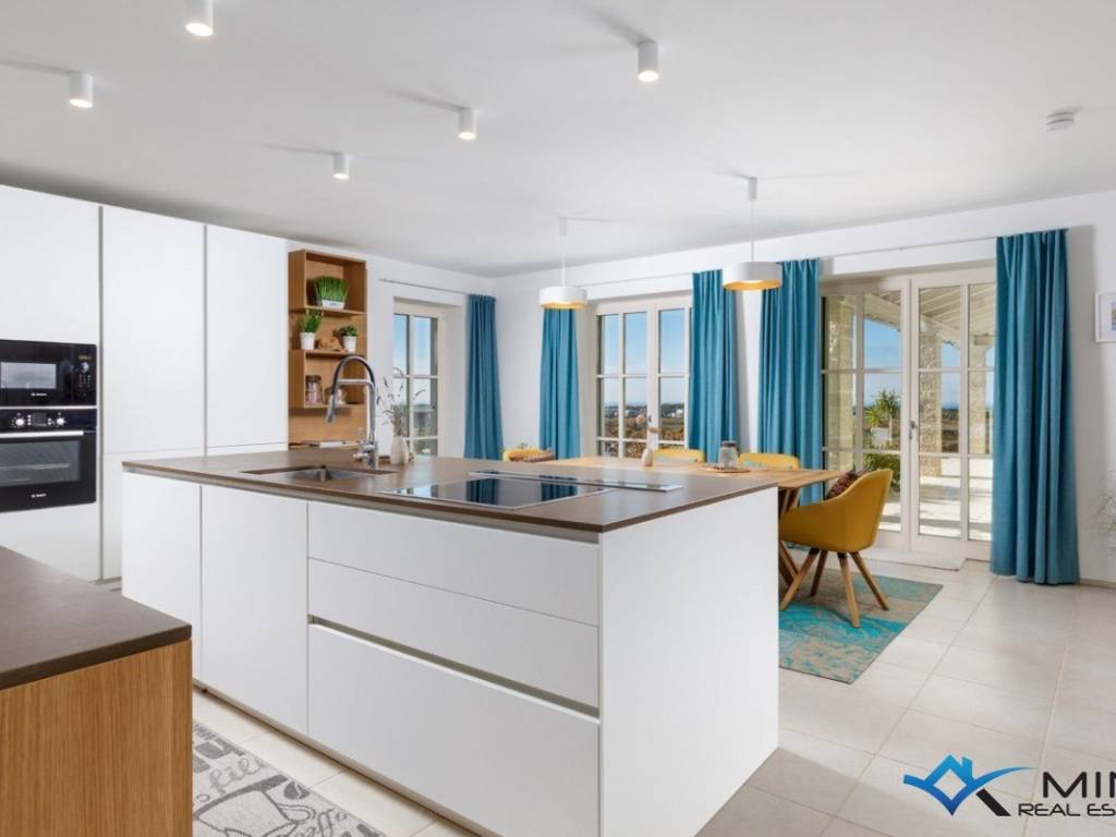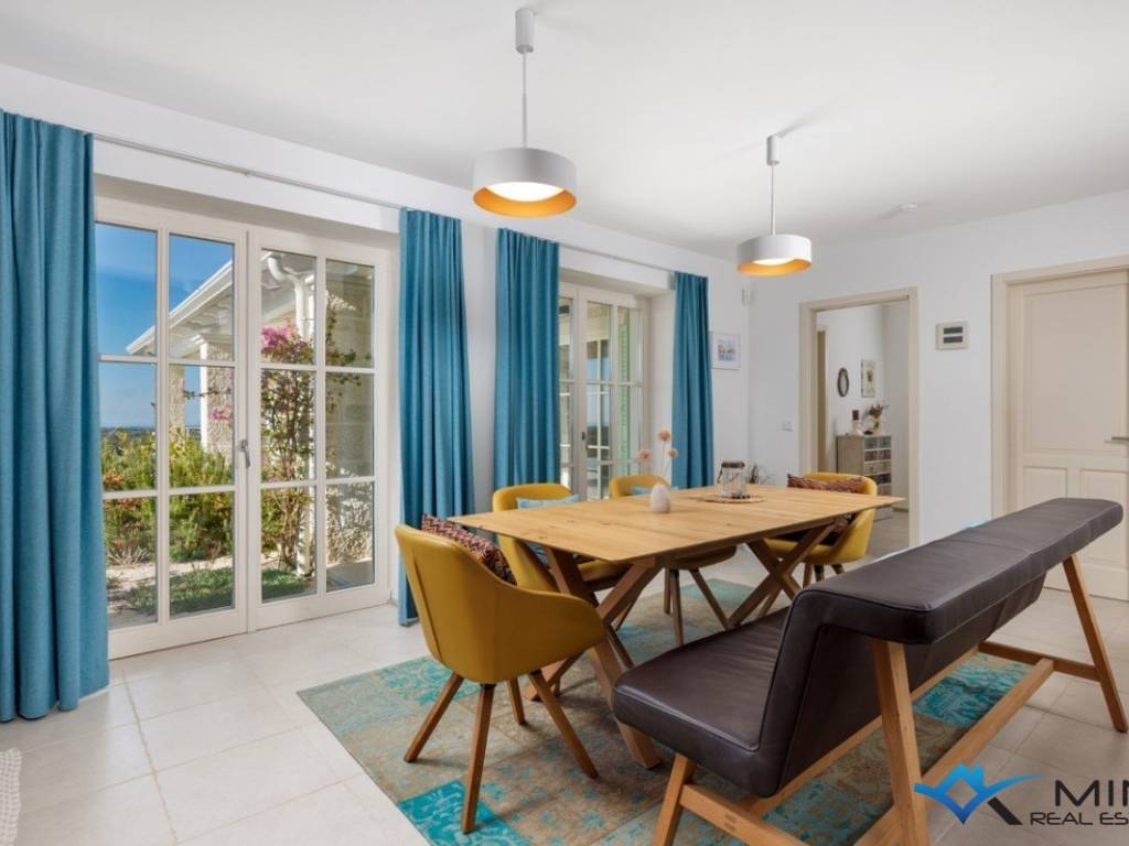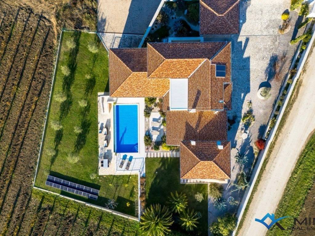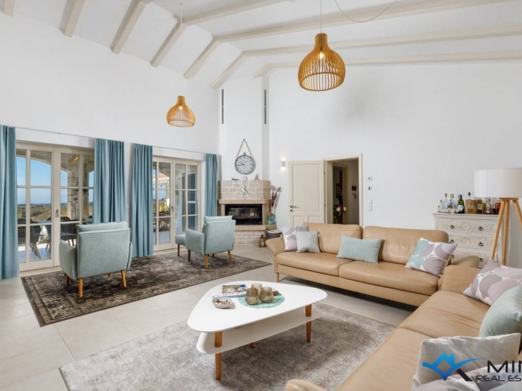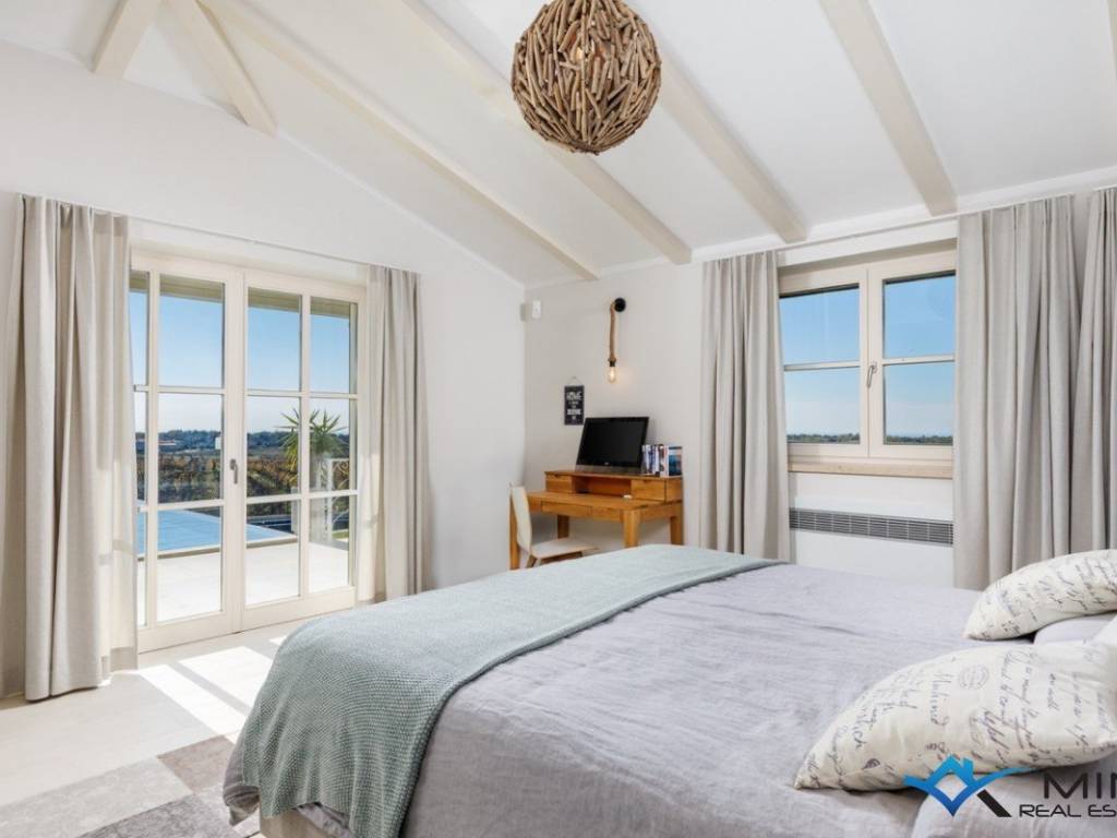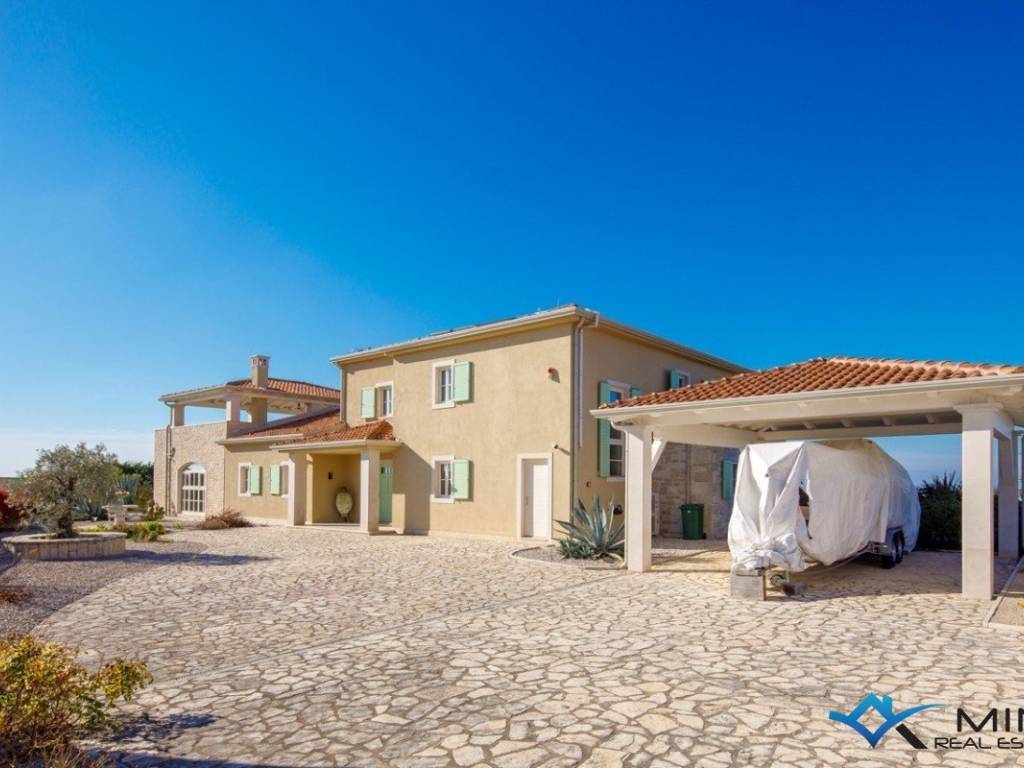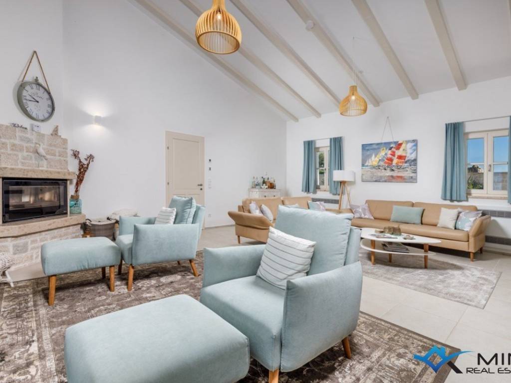 Just a few minutes drive from Novigrad, a breathtaking detached stone villa is for sale. The villa boasts 420 m, divided across three floors: basement, ground floor, and first floor, and sits on a spacious plot of 2,722 m, offering complete privacy and tranquillity. The basement features a 39 m storage area that can also be used as a garage. The ground floor comprises a hallway (an elegant entrance area with traditional Istrian charm), a pantry, WC, a tavern of approximately 18 m with a fireplace, a kitchen with dining area, and a 44 m living room that is spacious and bright, with high ceilings and a fireplace that creates a unique atmosphere. On the ground floor there are two bedrooms, including a master bedroom of 20 m, which is spacious and luxurious (with a private 20 m bathroom, sauna, and a 10 m walk-in wardrobe), while the second bedroom is 10 m with a private bathroom and can also be used as an office. Upstairs there are three bedrooms, two of which have private bathrooms and each their own private terrace with beautiful views of the sea and nature. Heating in the villa is via underfloor heating with a heat pump, while cooling is provided by a wall-integrated system, also powered by the heat pump. The villa is also equipped with a 3 kW photovoltaic power plant, solar collectors, and a water softening system. The grounds are beautifully landscaped, with an automated lawn irrigation system, and feature an infinity pool of around 70 m equipped with a saltwater electrolysis water treatment system, dynamic pool pump, and remote control via the internet. Near the pool there is a covered summer kitchen with a barbecue, gas hob, fridge, and sink. The sea and a beautifully maintained beach are 7 km away, while the centre of Novigrad is 8 km away.