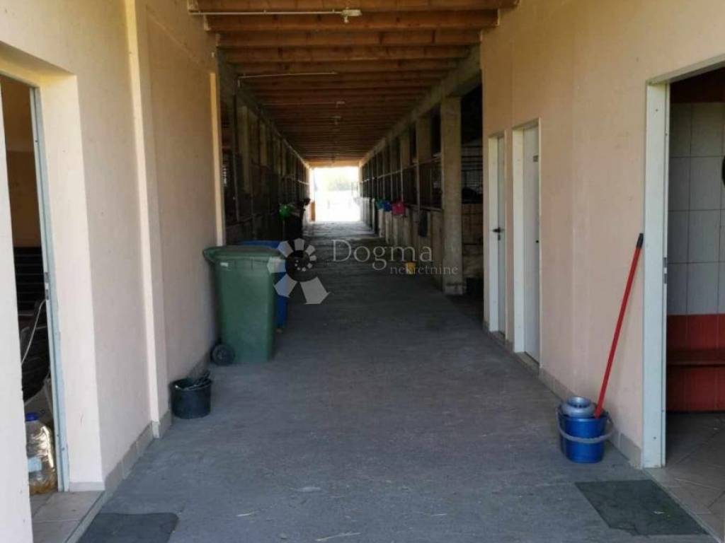 -hodnici -svlačionice -tuševi -sanitarije -ured -21 unutarnji boks -9 vanjskih boksova -tavanski prostor za skladištenje -Mogućnost prenamjene konjičkog objekta u ekskluzivan prostor za proslave, evente ili vjenčanja -Mogućnost uređenja gornje etaže u dodatne smještajne kapacitete -Površina objekta: 376 m -Građevina nudi brojne investicijske i razvojne mogućnosti -Tlo je pjeskovito i plodno -Imanje je već bilo domaćin državnih, europskih i svjetskih prvenstava u jahanju -Parcela se može podijeliti -Mogućnost odvajanja dijela zemljišta za konje ili dodatne sadržaje -Sve legalno izgrađeno s kompletnom dokumentacijom -Kupac može odmah preuzeti uhodano poslovanje (pansion i konjički klub)