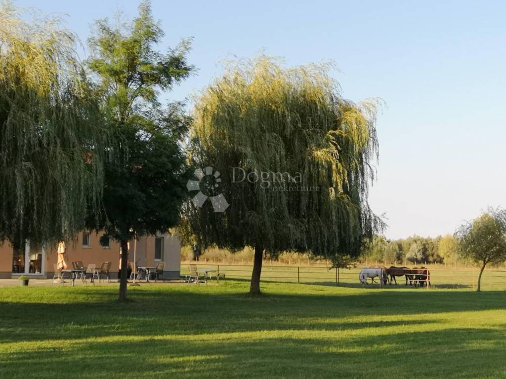 -Na prodaju je prostrano imanje u Kopačevu (60.383 m) s pansionom, restoranom, apartmanima i konjičkim kompleksom, idealno za kombinaciju poslovanja i privatnog života -Parcela na kojoj je pansion i prostor za konje je 46002 m2, te je cijelo zemljište građevinsko, a postoji mogućnost podjele na zasebne jedinice, plaćena prenamjena -Dodatna parcela je 14381 m2, nalazi se nasuprot ovom kompleksu, te je u cjelosti u zoni građenja -Vlastito, energetski neovisno napajanje električnom energijom putem solarnih panela (eco-friendly koncept) -Objekt je sagrađen 2009. godine -Spojen na gradsku vodu -Grijanje na plin putem cisterne -Vlastita izolirana septička jama -Dobar pristupni put