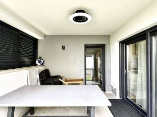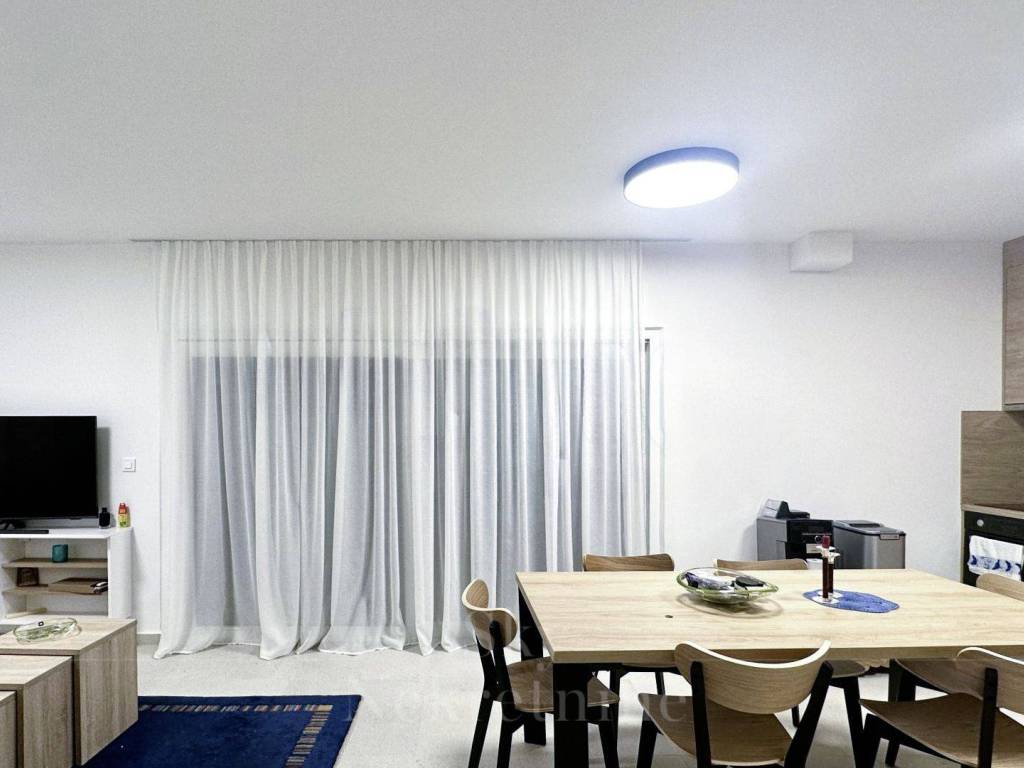 The first apartment is located on the ground floor of a building constructed in 2022. It consists of three bedrooms, three bathrooms, a spacious living room, a fully equipped kitchen, and a terrace leading to the garden area, which features a heated pool.