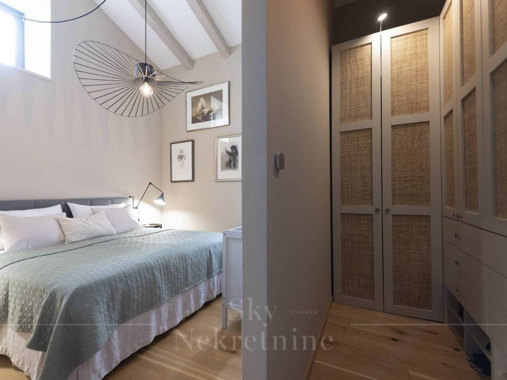 The smaller house, with an area of 135 m², also includes a living room, kitchen, spacious bedrooms, and an elegantly designed bathroom, providing all the necessary comfort. Its private garden of 1,000 m² includes a pool of the same dimensions, offering an ideal place to relax and enjoy the natural surroundings. This house comes with three parking spaces, adding to its convenience and comfort.