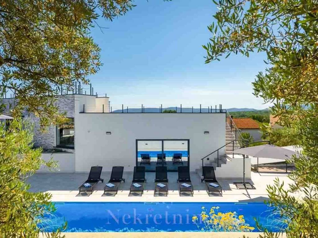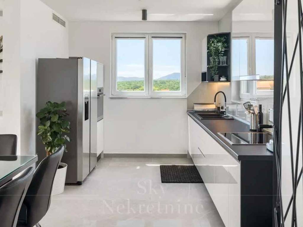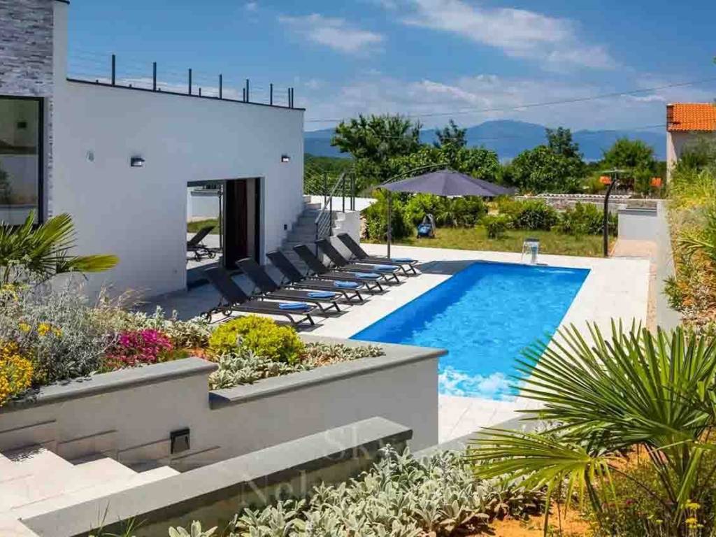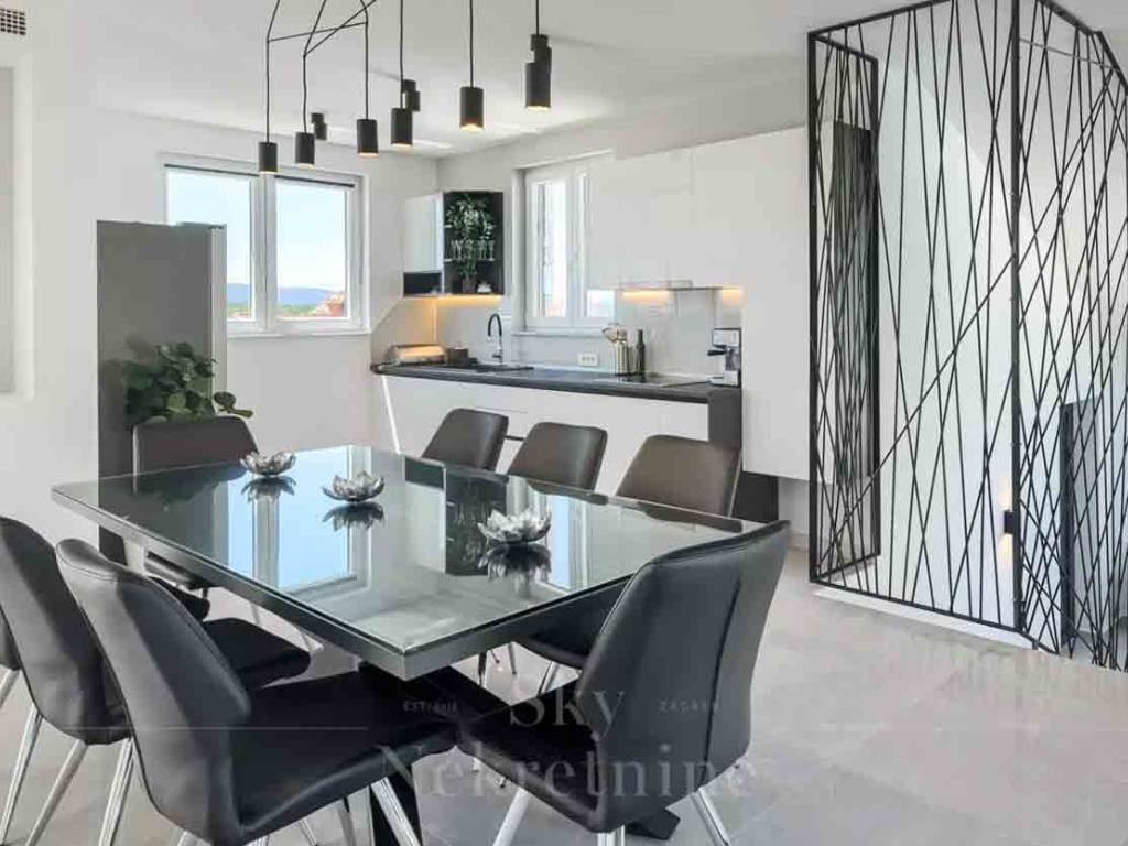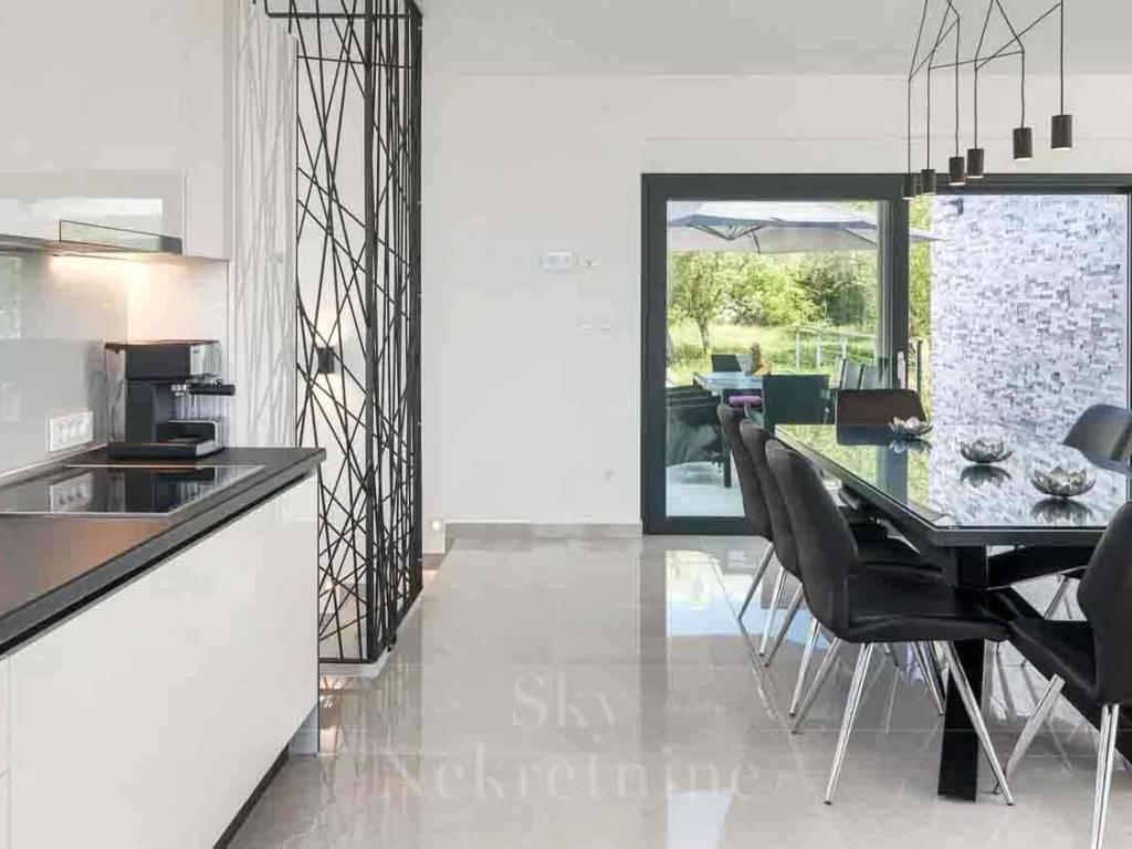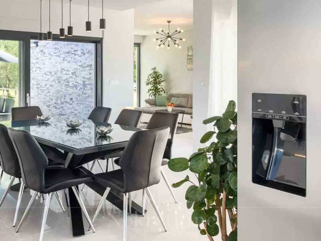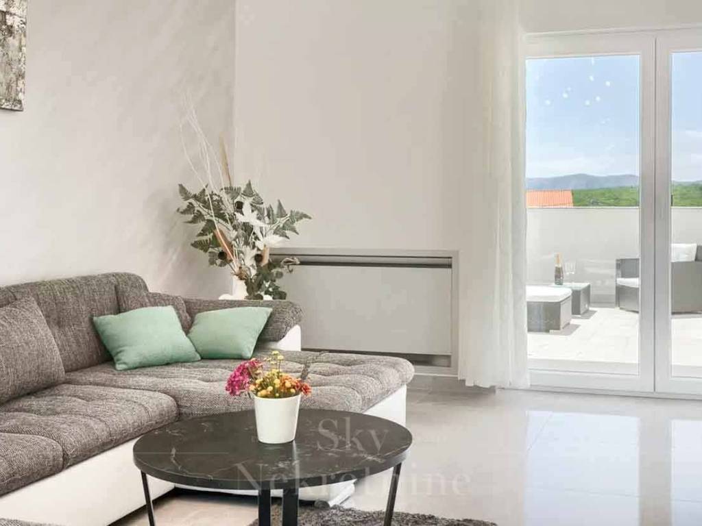 The agency Sky Real Estate presents a contemporary residence with a total area of ​​163.45 m2, located in a small settlement between Krk and Malinska. Just 3 km away from the coast. This exceptional property is situated on a spacious plot of 1150 m2. The property also includes an additional space of 36.5 m2.