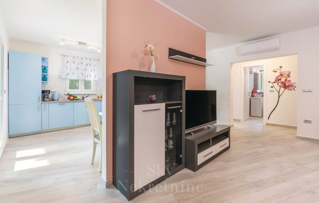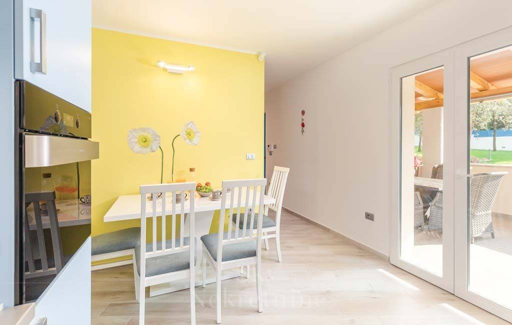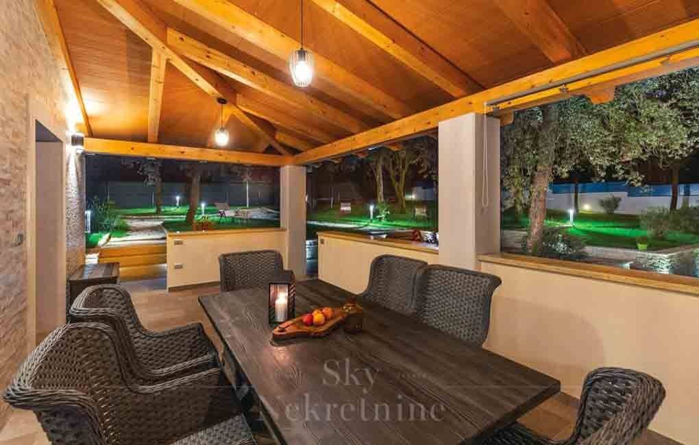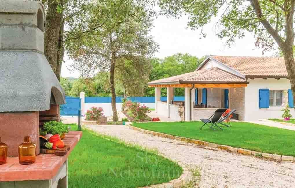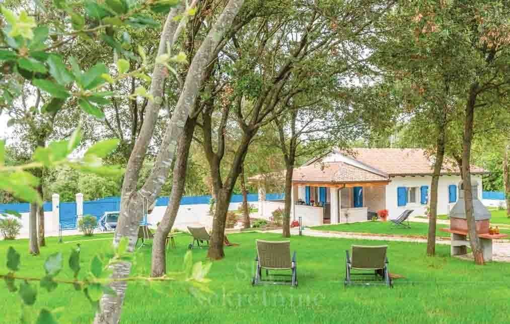 Sky nekretnine agency presents a holiday home in an excellent location. Not far from the city of Rovinj, this charming stone house offers comfort with 70m2 of space, surrounded by a peaceful garden of 3168m2, with a mobile home, barbecue, and children's playground. It attracts those seeking a retreat in untouched nature, just a few steps from the sea. An ideal place for a family getaway.