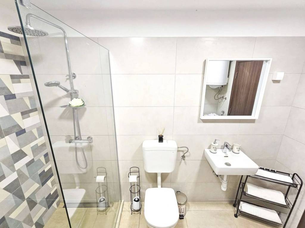 Additional amenities include a garden shower, a spacious parking lot of 63 m2, and a spectacular view of Paradise Beach and the surrounding nature. The proximity of just 600 meters to the beach allows for quick and easy access to the sea and the beach.