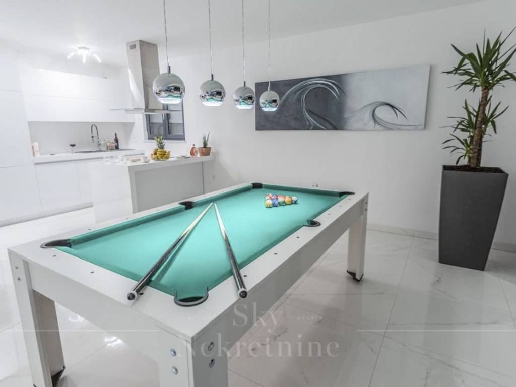The villa features underfloor heating, aluminum windows with sliding doors, security doors, air conditioning, and marble imitation tiles on the floors.