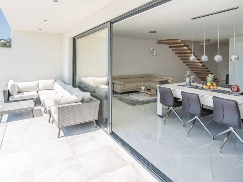 Boasting a 180-degree view to the south overlooking the sea and a private garden, the villa offers 3 terraces, while an additional terrace on the north side is designed as a relaxation area or for barbecue and socializing.