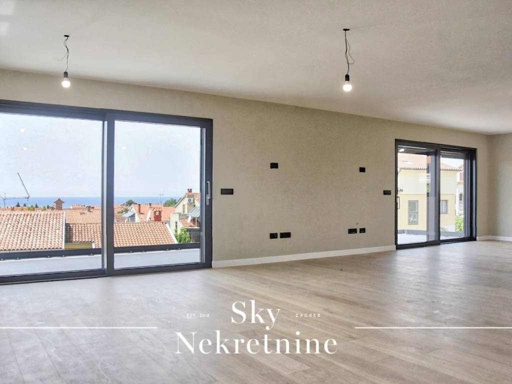 Sky Real Estate Agency presents a luxurious penthouse in an excellent location, only 550 meters from the sea and 900 meters from the Freedom Square in the center of Poreč.