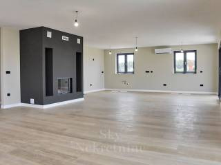Access to the penthouse is facilitated by an elevator directly from the garage. Inside the apartment, underfloor heating ensures a comfortable temperature, while premium materials such as oak parquet and Italian ceramic tiles contribute to an elegant interior.