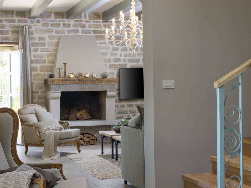 From the living room and bedrooms on the ground floor, there is access to the covered terrace for dining, barbecue, and relaxation.