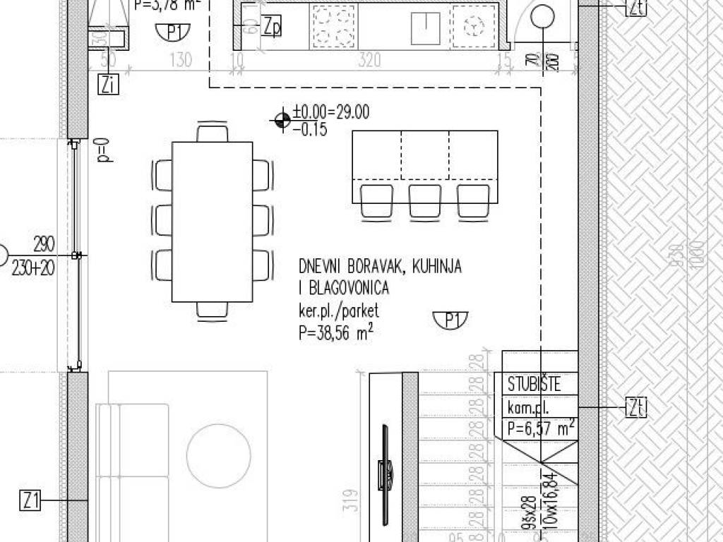 - GROUND FLOOR - open space living room with dining room and kitchen, hallway, guest toilet, laundry room and exit to the terrace