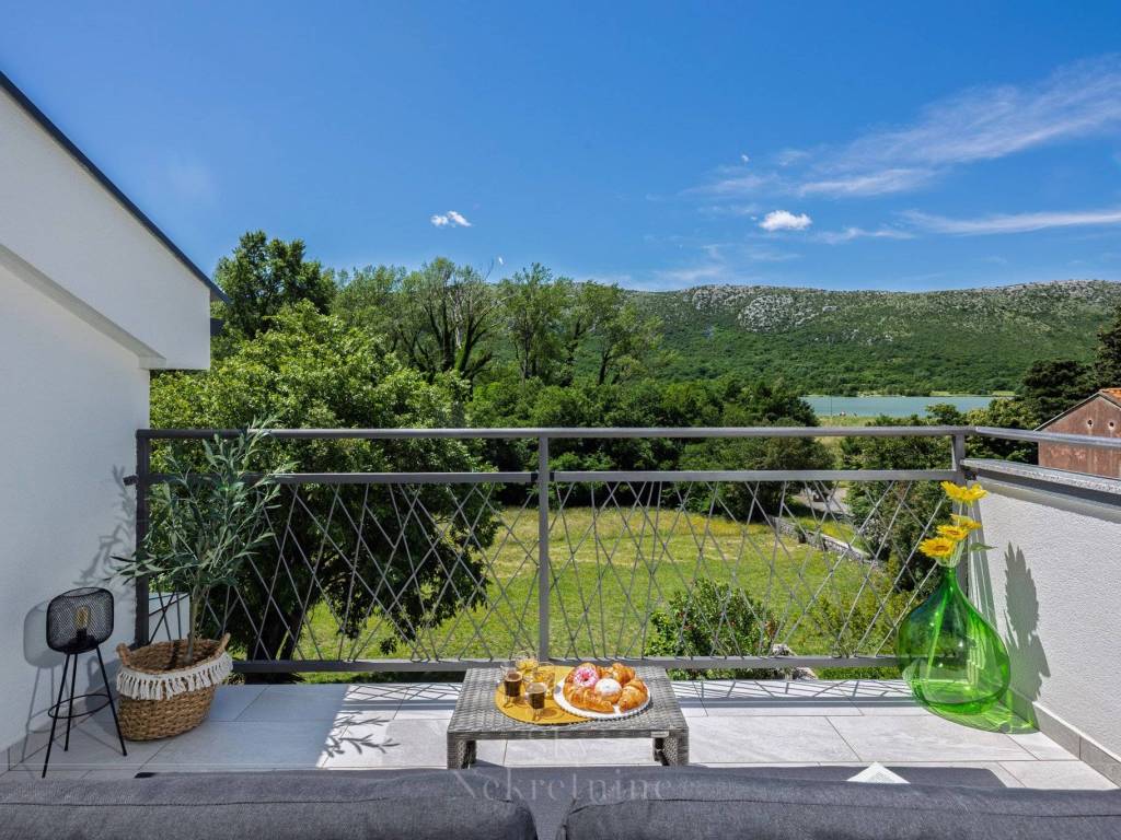 The house, with a gross area of 400m2, is situated on a plot of 572m2, just 10 minutes away from Crikvenica and a minute's walk from the lake. It was built in 2018 and is divided into 3 floors with an excellent layout - floor plans for each level are attached to the listing.