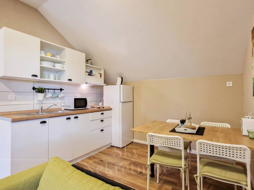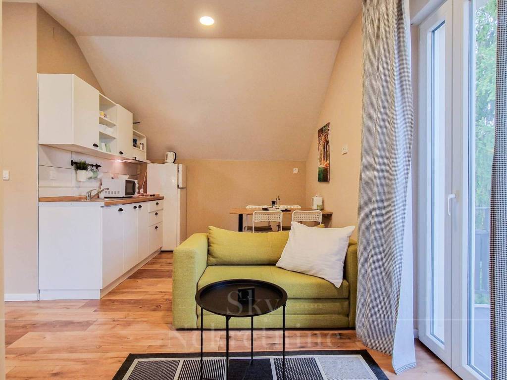 The building in the yard has an area of 75 m2, and is currently used as additional content with a kitchen, sanitary facilities and a covered area for socializing with a barbecue, size 30 m2. Another studio apartment of 30 m2 can be arranged in the attic of the building.