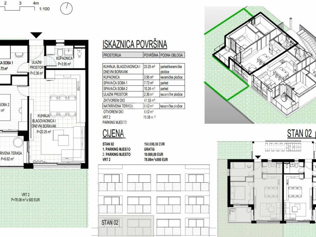 It has one outdoor parking space, and a garden of 78.08 m2.