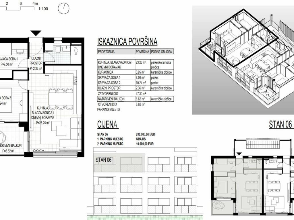 The interior area of the apartment is 47.30, the covered terrace is 6.62 m2.