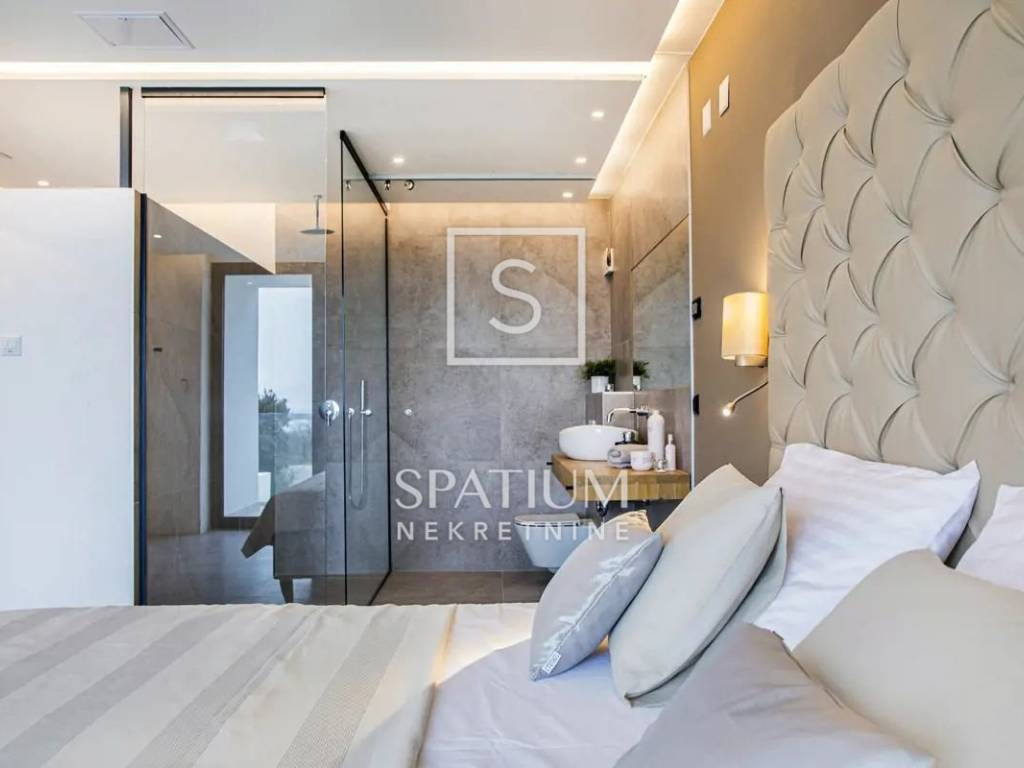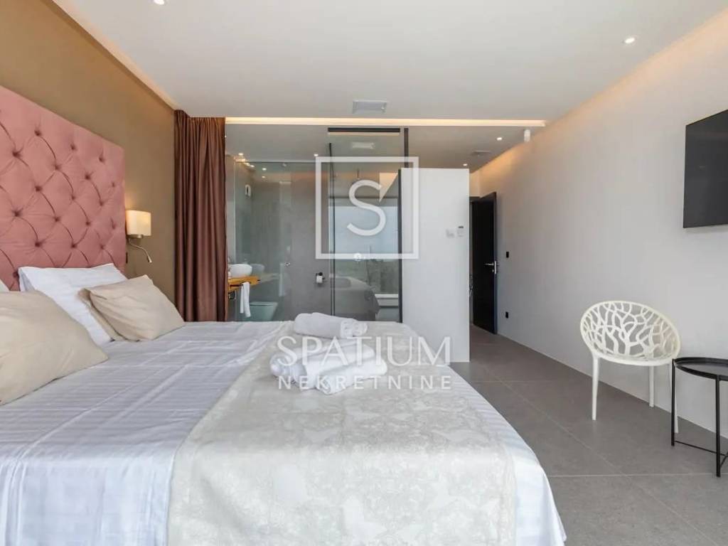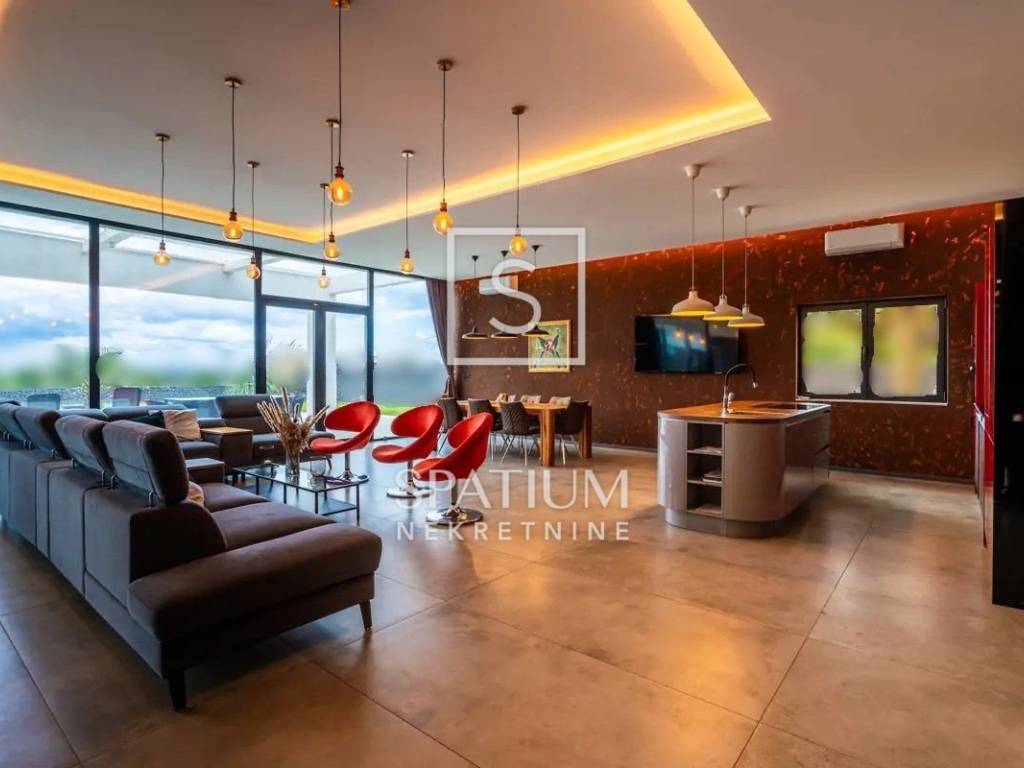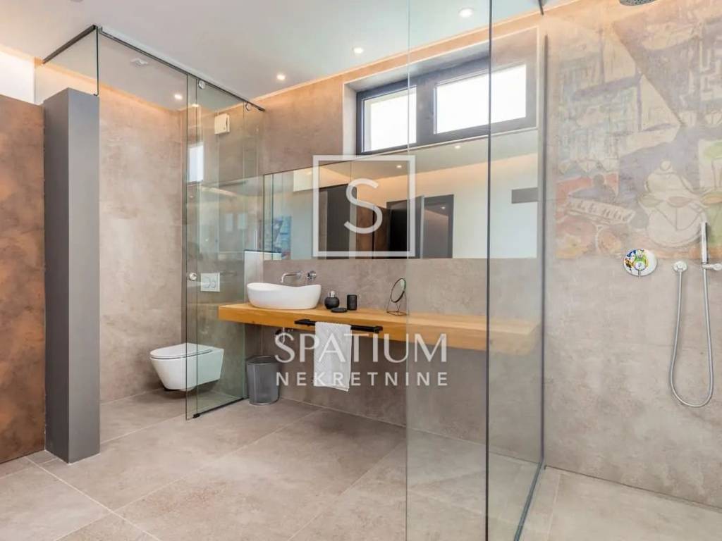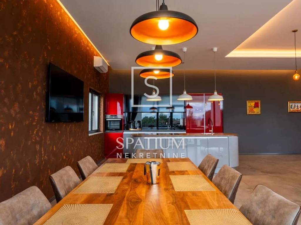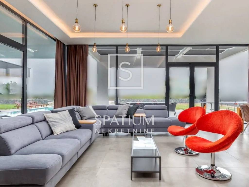 MEDULIN, SURROUNDINGS, we offer a modern villa with a swimming pool. It is only 450m from the sea, which makes it ideal for family life or investment for tourist rental purposes, given the above-average occupancy during the tourist season.