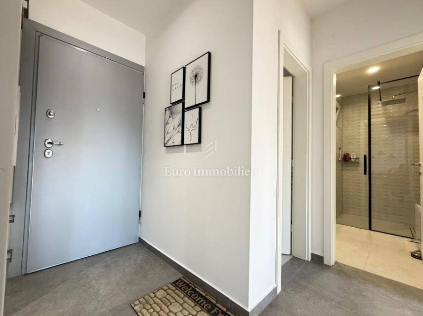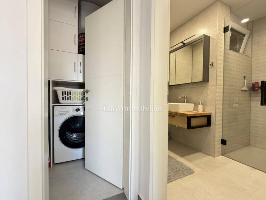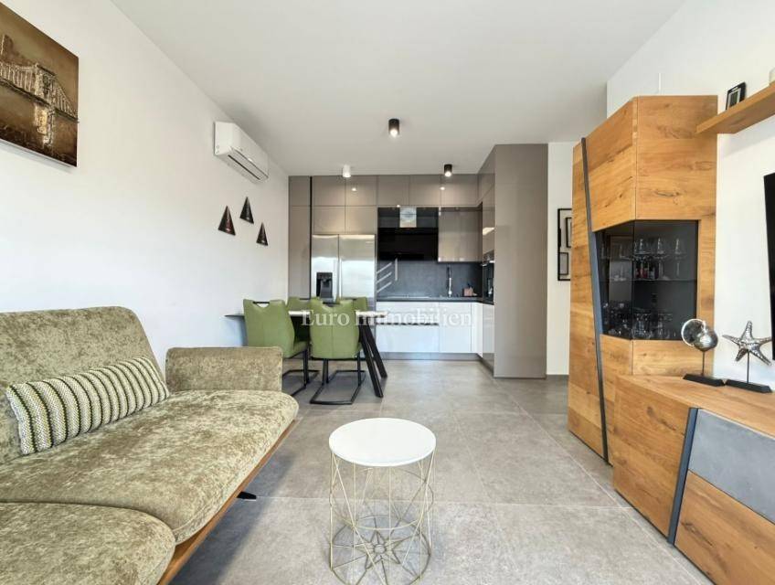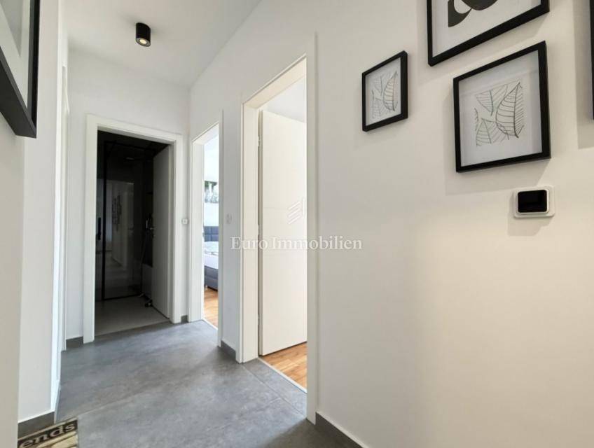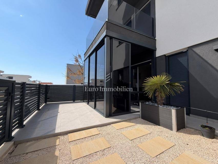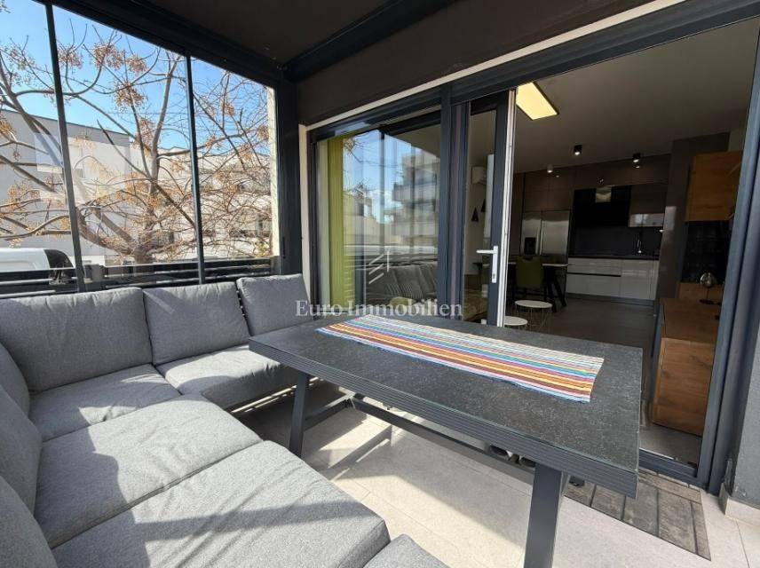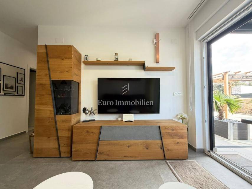 Novalja – a superbly furnished apartment for sale with a net usable area of 81.77 m², located on the ground floor of a newer building, only 300 meters from a sandy beach.