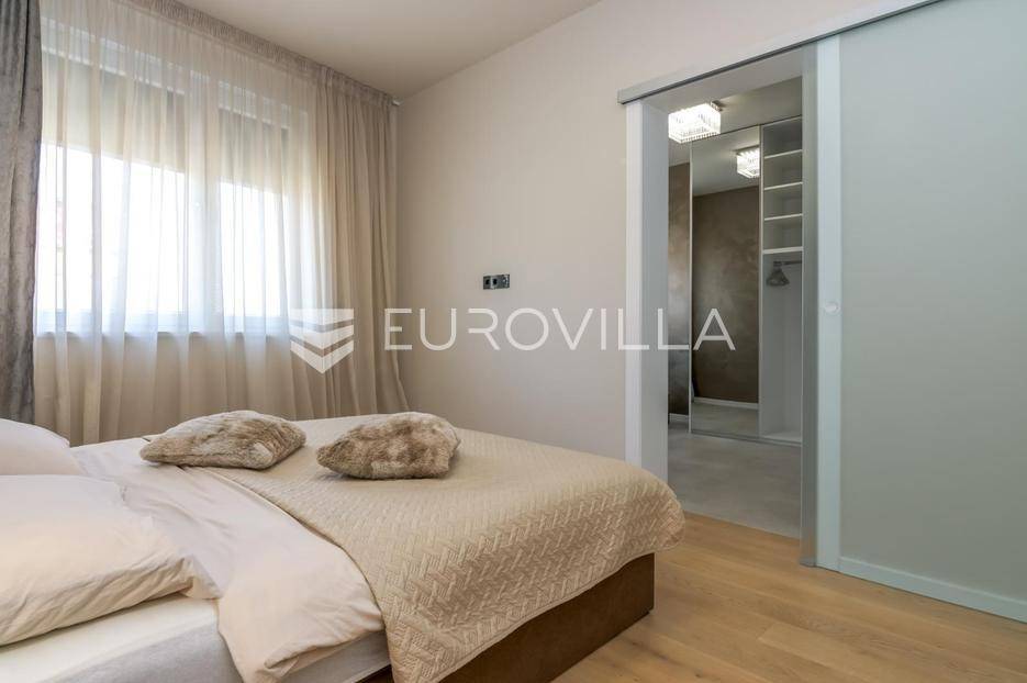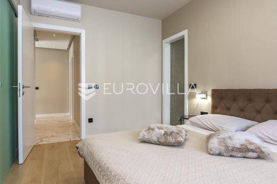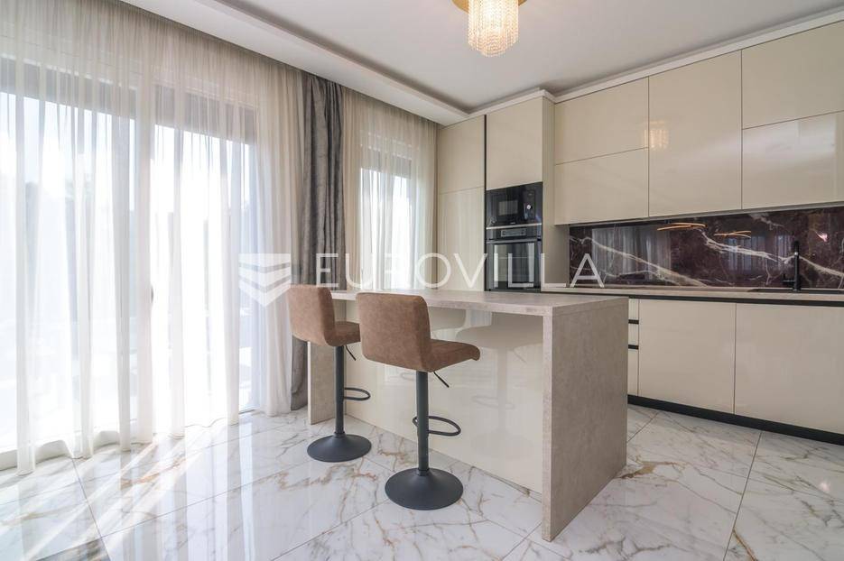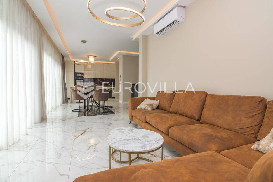 Zagreb, Remete, luksuzan penthouse na prvom katu novogradnje, korisne površine 134 m2.Sastoji se od ulaznog stubišta, dnevnog boravka s kuhinjom i blagovaonicom s izlazom na prostranu terasu 43 m2, tri odvojene spavaće sobe, kabineta i dvije kupaonice, ukupne zatvorene površine 113 m2.Sve sobe su klimatizirane, podno grijanje u cijelom stanu, ugradbeni namještaj.Stanu dodatno pripadaju dva vanjska parkirna mjesta (natkriveno i nenatkriveno) i spremište.Mirna lokacija u Remetama, blizina prirode i svih važnih sadržaja. Idealno za obitelj!Za sva dodatna pitanja, stojimo Vam na raspolaganju.... Više na eurovilla.hr, ID: 138264