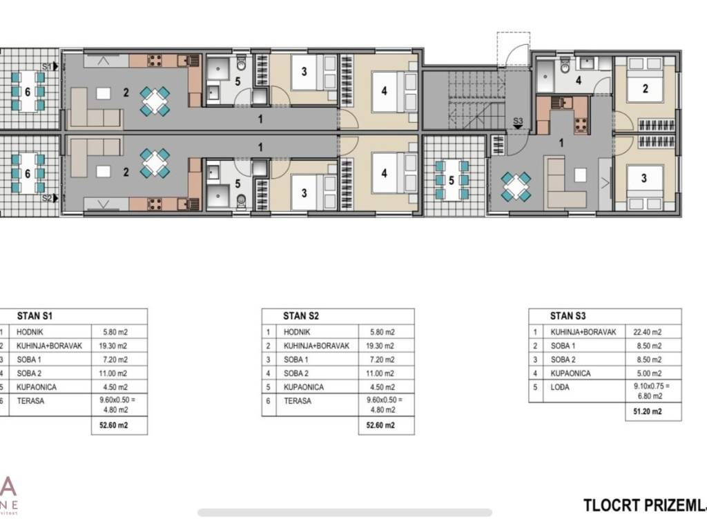 Pag - Mandre, se vende apartamento de dos dormitorios de 52,60 m2 en la planta baja de un edificio residencial con un total de ocho apartamentos, en construcción, con mudanza prevista para 07/2026. Construcción de calidad, calefacción por suelo radiante en cada habitación, persianas eléctricas, azulejos cerámicos en todo el apartamento, etc...