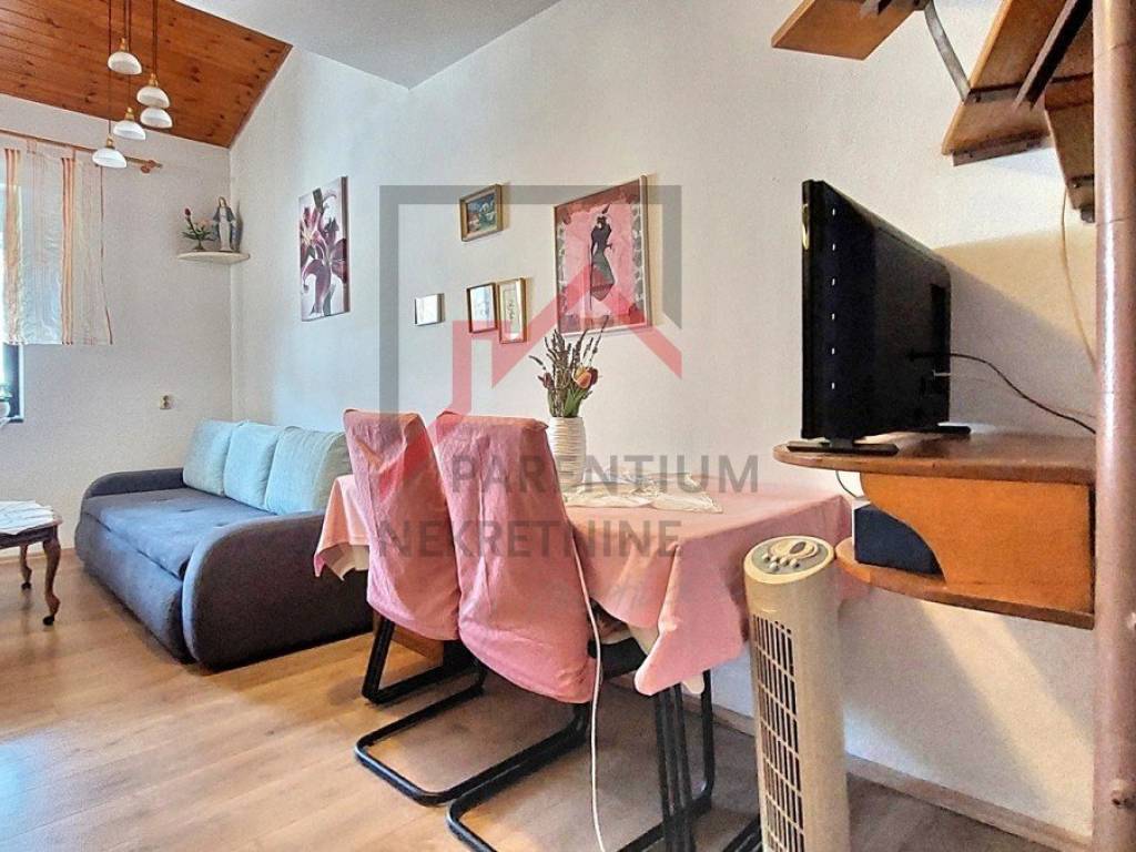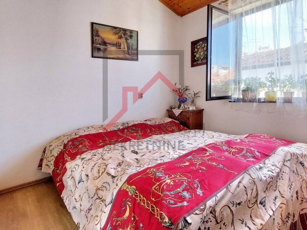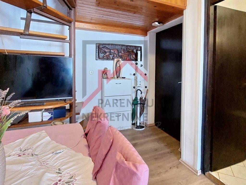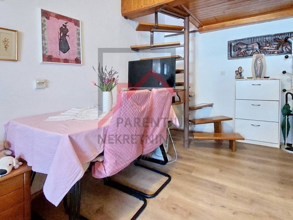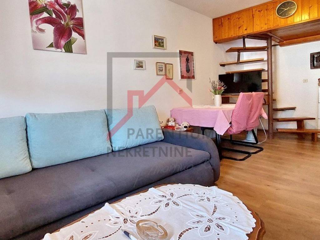 For sale is an apartment of 38 m2 in Červar Porat near Poreč, the apartment consists of a living room, kitchen, covered terrace, bedroom, bathroom and gallery (second room). The apartment is located on the 3rd floor of the building, it is sold furnished, close to shops, the sea/beach and public transport. Energy certificate: D