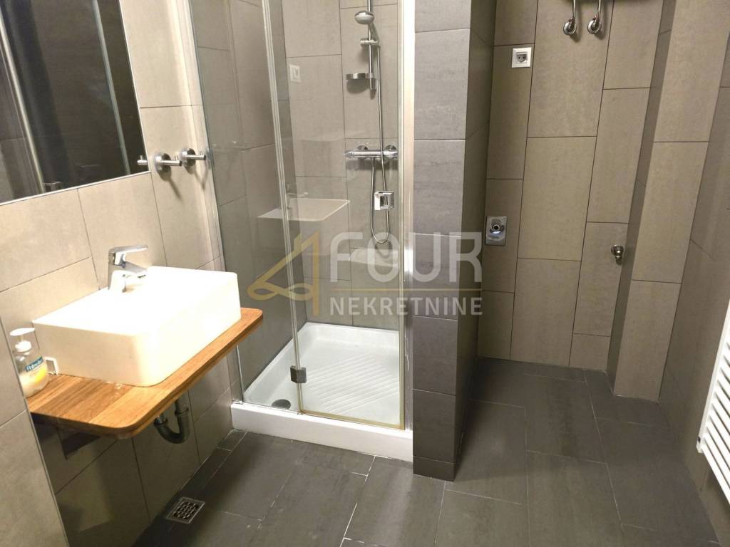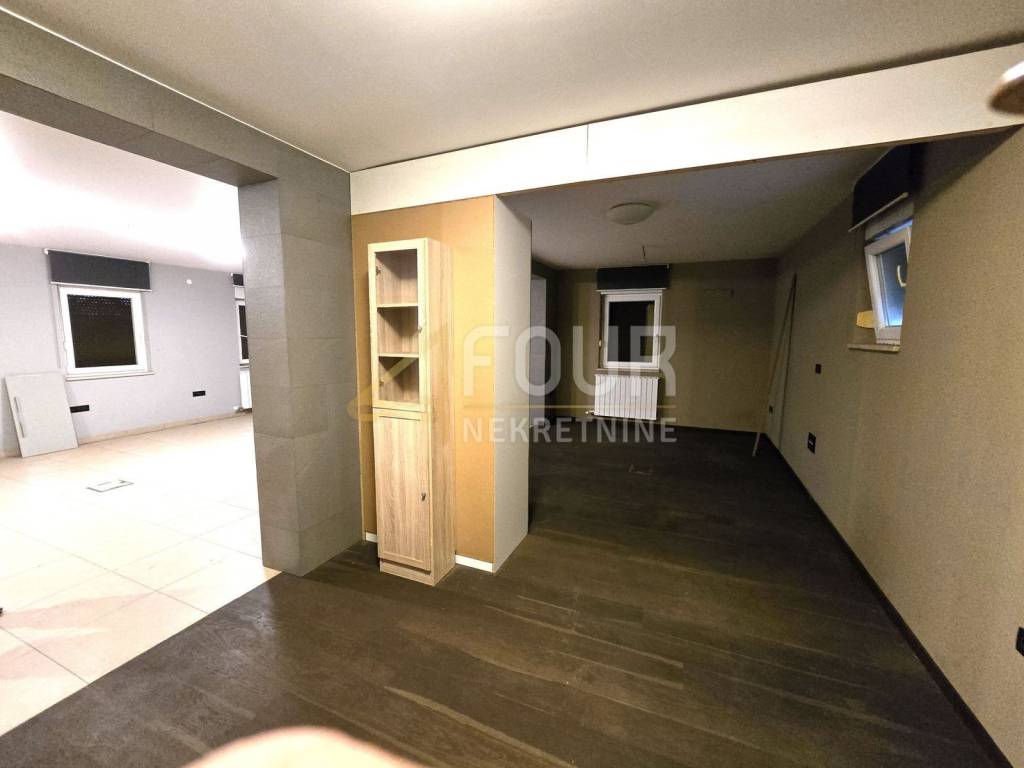 Poslovni prostor za zakup na Podmurvicama, 99.10 m2, na 1. katu novije zgrade. Prostor je prazan i nudi mogućnost prilagodbe potrebama najma. Ima centralno grijanje, PVC stolariju i kvalitetne keramičke podove. Funkcionalno je uređen i sastoji se od većeg radnog dijela, manje prostorije za konferencijski stol i ured voditelja, skladišnog prostora, kuhinje i kupaonice. Uz prostor dolaze i dva parkirna mjesta.