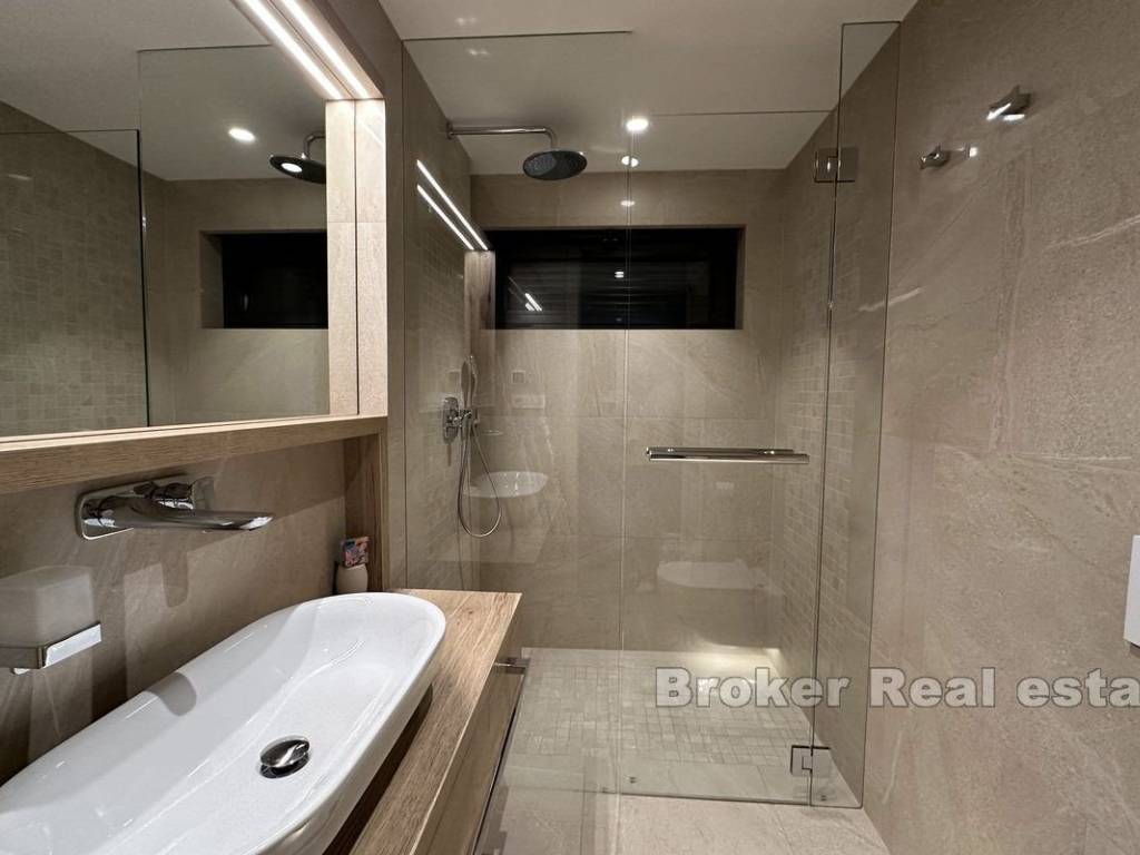 A remarkable apartment in a prestigious location, located in the first row to the sea. The living area of 66.62 m² includes two bedrooms, one of which has an en suite bathroom, a spacious living room with access to a terrace that offers a beautiful view of the sea and islands. In addition, the apartment has a kitchen, hallway, additional bathroom and laundry room.   One garage space is included in the price of the apartment. On the ground floor of the urban villa there is an infinity pool with a lounge area for the common use of all residents.   The apartment is located in the immediate vicinity of all attractive facilities, while at the same time providing peace and privacy.
