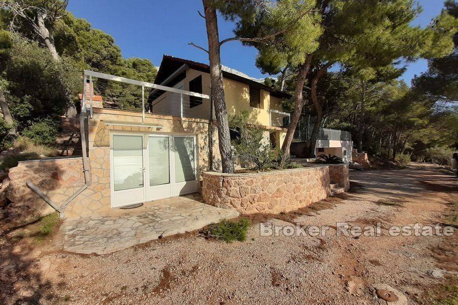 Detached house with pool, for sale, located in a quiet and elegant natural environment, on the south side of the island of Hvar, overlooking the sea. The house is located on a plot of 432 m2 and consists of two floors, ground floor and first floor, total area of 80 m2. On the ground floor there is a studio apartment and a spacious storage room, while on the first floor there is a two bedroom smaller apartment. Behind the house are additional facilities (swimming pool, barbecue, volleyball court) while on the west and east side of the house there are two spacious terraces overlooking the sea. Very interesting holiday property, given its excellent location and the environment in which it is located. The house is a bit older, so the new owner can expect additional investment in the adaptation of the space, and since the land on which the house is located is under construction, the new owner could consider a new project to make better use and upgrade. All in all, a rare offer in this area that will not leave a true nature lover and a perfect summer ambience indifferent.