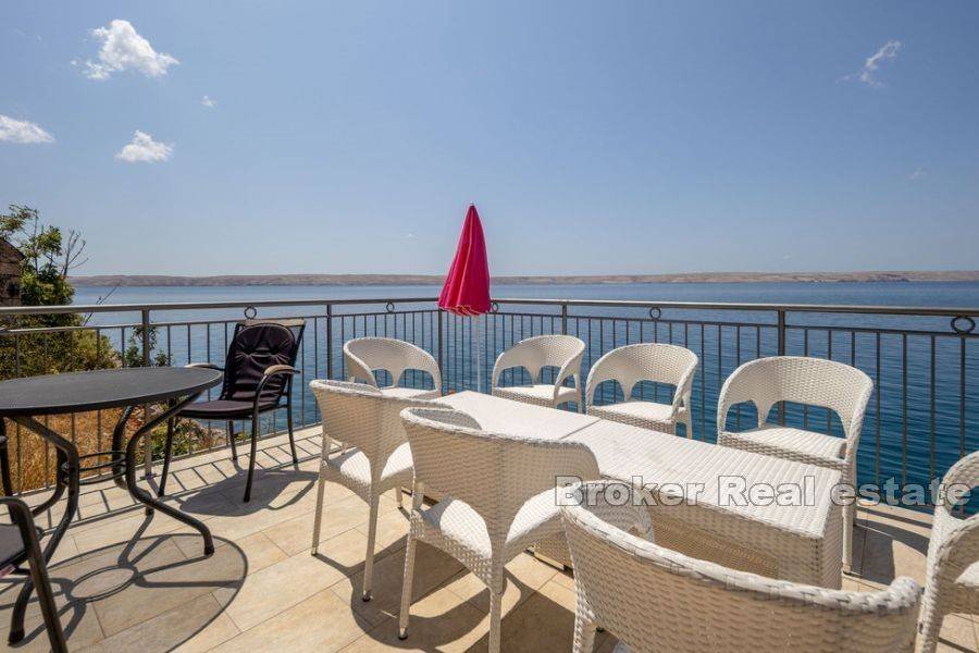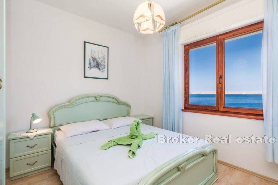 A holiday home located in an attractive location by the sea. Built on a plot of 870 m2, it extends over two floors consisting of two apartments with a total of five bedrooms, two bathrooms and two kitchens. Maintained and preserved, it is sold with furniture. Air conditioning is used for heating and cooling. The garden has a garage, parking for several cars and a corner arranged for children’s entertainment. What makes this property unique is the access to a well-maintained concrete beach and a boat mooring. This small oasis is ideal for lovers of attractions and entertainment at sea. The terraces, which offer a unique view of the sea, in addition to expanding the interior space, create an idyllic setting for socializing, especially in the summer. Given the position by the sea, it offers an excellent opportunity for tourist rentals and is also ideal for vacations and escape from the hustle and bustle of the city.