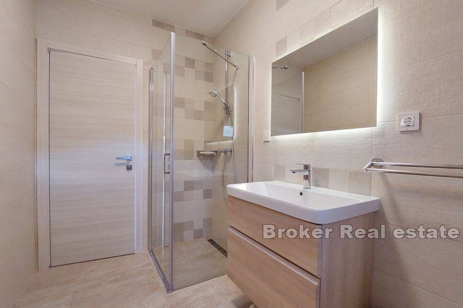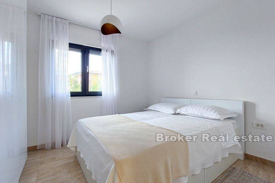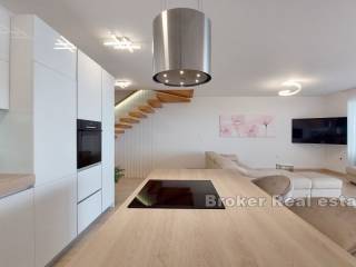A modern villa for sale in a dominant position with a panoramic view of the sea.   Located in a quiet place not far from Opatija. The total living area of 250 m2 is spread over four floors. In the basement there is a garage, a space intended for a tavern and an engine room.   The ground floor consists of a gym, a laundry room, two bedrooms with attached bathrooms, and a terrace. On the first floor there is a kitchen, dining room, bedroom, bathroom, storage room and a spacious living room with access to the terrace.   On the second floor there is a bedroom with a bathroom and direct access to a beautiful roof terrace with an infinity pool. The enchanting panoramic view of the sea can be seen from as many as three terraces, while the additional terrace on the north side is designed as an area for barbecues and socializing with loved ones.   The villa stands out for its design, modern interior and beautiful view of the surrounding natural beauty, and provides top comfort and lifestyle for those who value luxury, comfort and privacy.