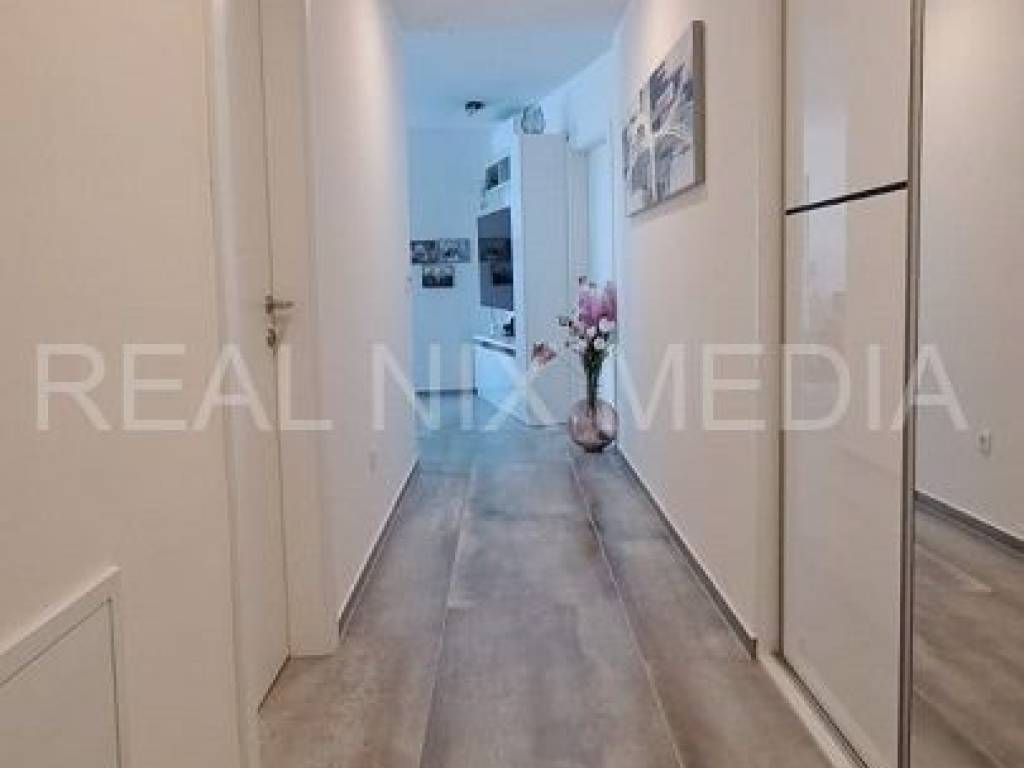Stan se prodaje kompletno namješten! Klima uređaj u svakoj prostoriji, podno centralno grijanje u cijelom stanu, PVC stolarija, protuprovalna vrata, portafon... Stan sačinjava predsoblje, kuhinja, blagovaonice i dnevni boraka sa izlazom na balkon, dvije spavaće sobe, kupaonica. Stanu pripadaju tri vanjska parkirna mjesta! Na krovnoj terasi provedene su instalacije struje i vode.