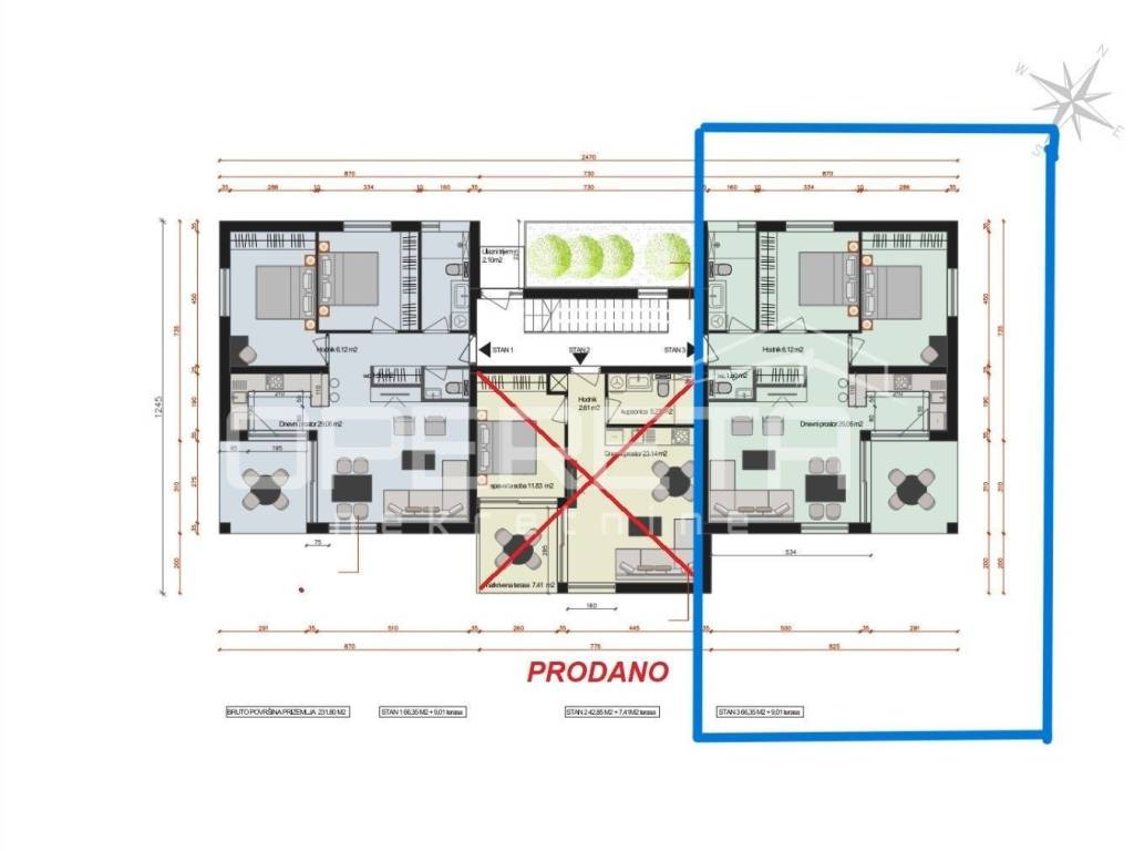 A two-bedroom apartment is for sale on the ground floor of a small residential building with only 5 apartments, located in a quiet neighborhood on the edge of the settlement, only 4 km from the center of Poreč and 3 km from the well-maintained beaches.
