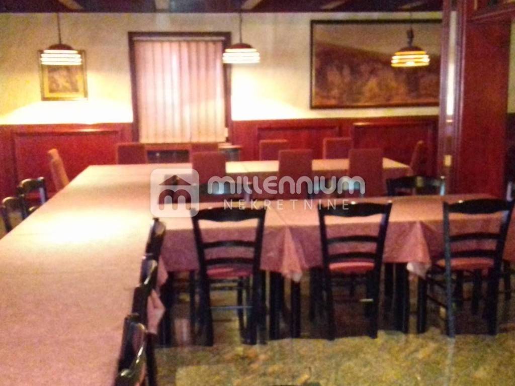 Na 1. katu od 220m2 smješten veliki i potpuno opremljen ugostiteljski objekt s puno sjedećih mjesta s pripadajućom lijepom, zatvorenom terasom.