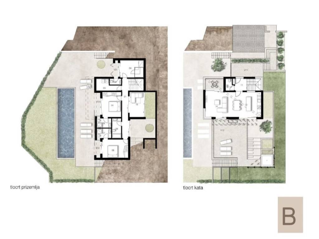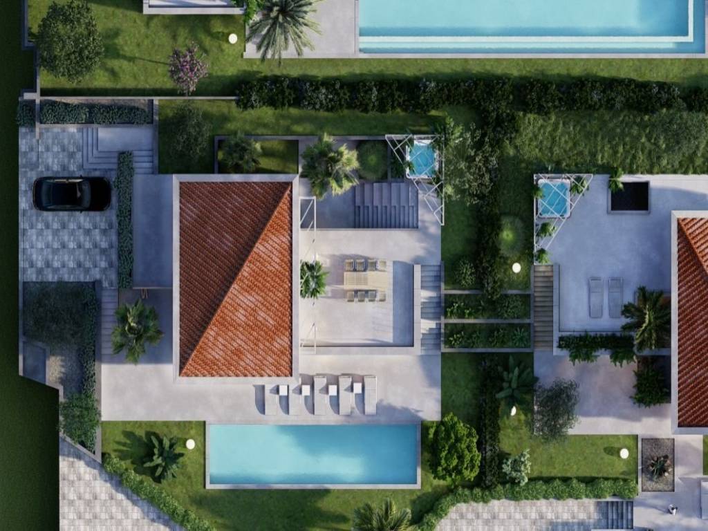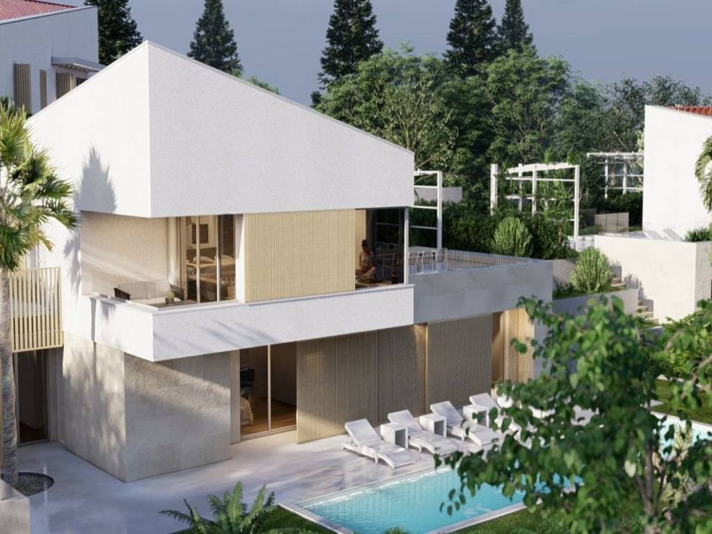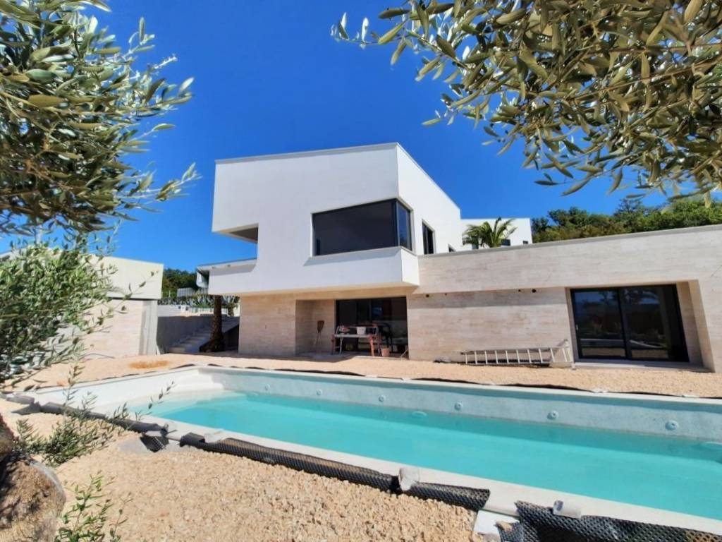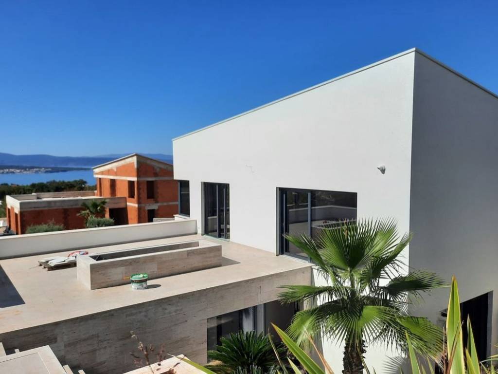 Otok Krk, Malinska, šire područje, prodaja luksuzne vile površine 149,60 m2, s bazenom i pogledom na more, u sklopu ekskluzivnog resorta. Vila se sastoji od prizemlja s dvije spavaće sobe s kupaonicama, sobom za druženje, wellnessom, praonicom, kupaonicom, vanjskim toaletom, hodnikom i terasom, prvog kata s dnevnom sobom s kuhinjom i blagovaonom, toaletom, hodnikom, nenatkrivenom i natkrivenom terasom. Unutar resorta dostupni su tereni za košarku, nogomet, tenis i dječje igralište. Vrhunska kvaliteta gradnje i opreme, vrhunske sanitarije i podne obloge, luksuzni namještaj, klimatizacija, dva parkirna mjesta. Mirna lokacija, 1000 m od plaže.