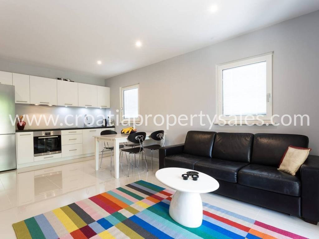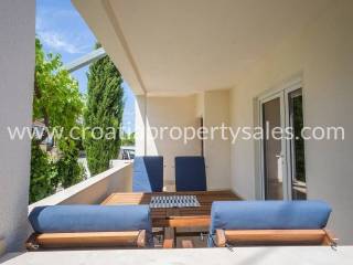 Apartment on the ground floor of a family house.The living area is 64 m2. It consists of a living room, kitchen, dining area that forms a whole, and a hallway, two bedrooms and a storage room.One bedroom has access to a balcony. There is one air conditioner in the living room.The apartment was renovated in 2018, new electricity, water, windows were installed...In front of the entrance there is a small terrace that also belongs to the apartment.The apartment also has one parking space. The apartment is in the process of being divided into condominiums.