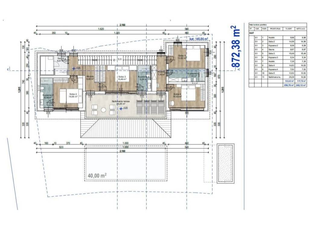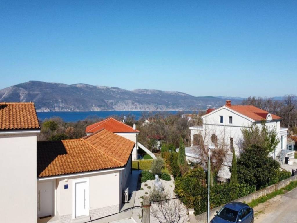 Otok Krk, grad Krk, šire područje, prodaja atraktivnog građevinskog zemljišta površine 887 m2, s pogledom na more i pravomoćnom dozvolom za izgradnju moderne obiteljske vile površine 242,12 m2. Mirna lokacija, 1500 m od plaže.